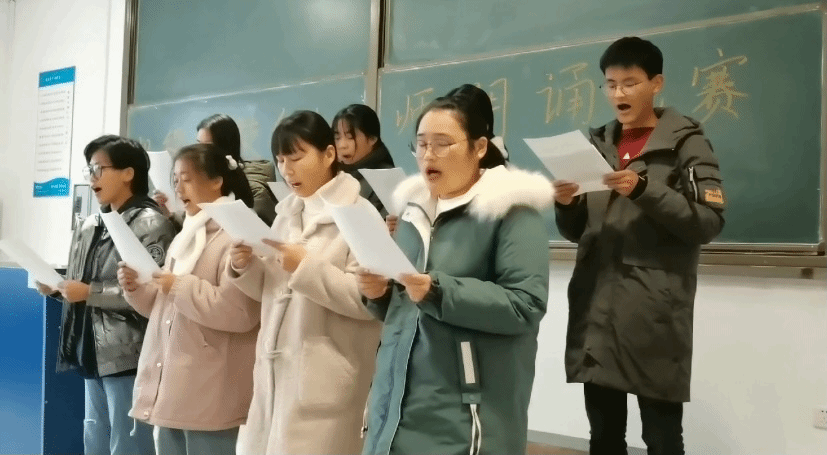 比赛结束后,黄洁根据参赛同学的表现,选出12位表现优异者成立朗诵小组,并准备后续“四史”系列活动视频的录制。