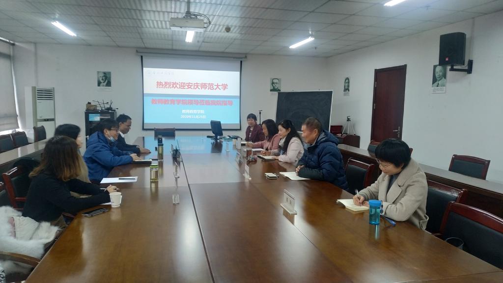 本网讯 11月25日上午,安庆师范大学教师教育学院党委副书记许世平、小学教育专业负责人李义胜、小学教育专业王爱菊教授和赵雪微老师,深入学校教师教育学院调研指导小学教育专业建设等问题,会议在锦绣校区行知楼710会议室召开。教师教育学院院长李群、书记穆娟、副院长闫龙、小学教育系系主任汪昌华及小学教育系部分教师参加了会议,会议由教师教育学院副院长闫龙主持。