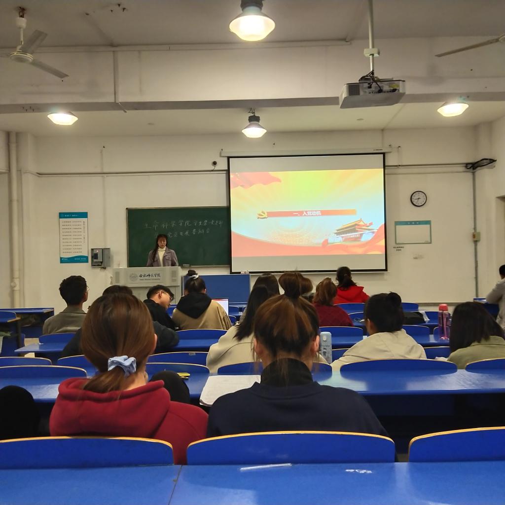 此次答辩会由各党支部书记主持,在宣布了会议流程及答辩要求后,各位答辩同学依次上台进行PPT展示。答辩同学分别从对党的认识、入党动机表明自己的入党愿望,简单介绍在培养考察期间个人在政治、思想、学习、工作、志愿服务等方面的主要表现,并且表达了今后的努力方向以及如何以实际行动争取入党。个人汇报环节结束后,与会领导老师紧紧围绕党的基本知识和时事政治对同学们进行提问,在一问一答的过程中,加深了同学们对于党的基本知识的了解和对党的深刻认识。