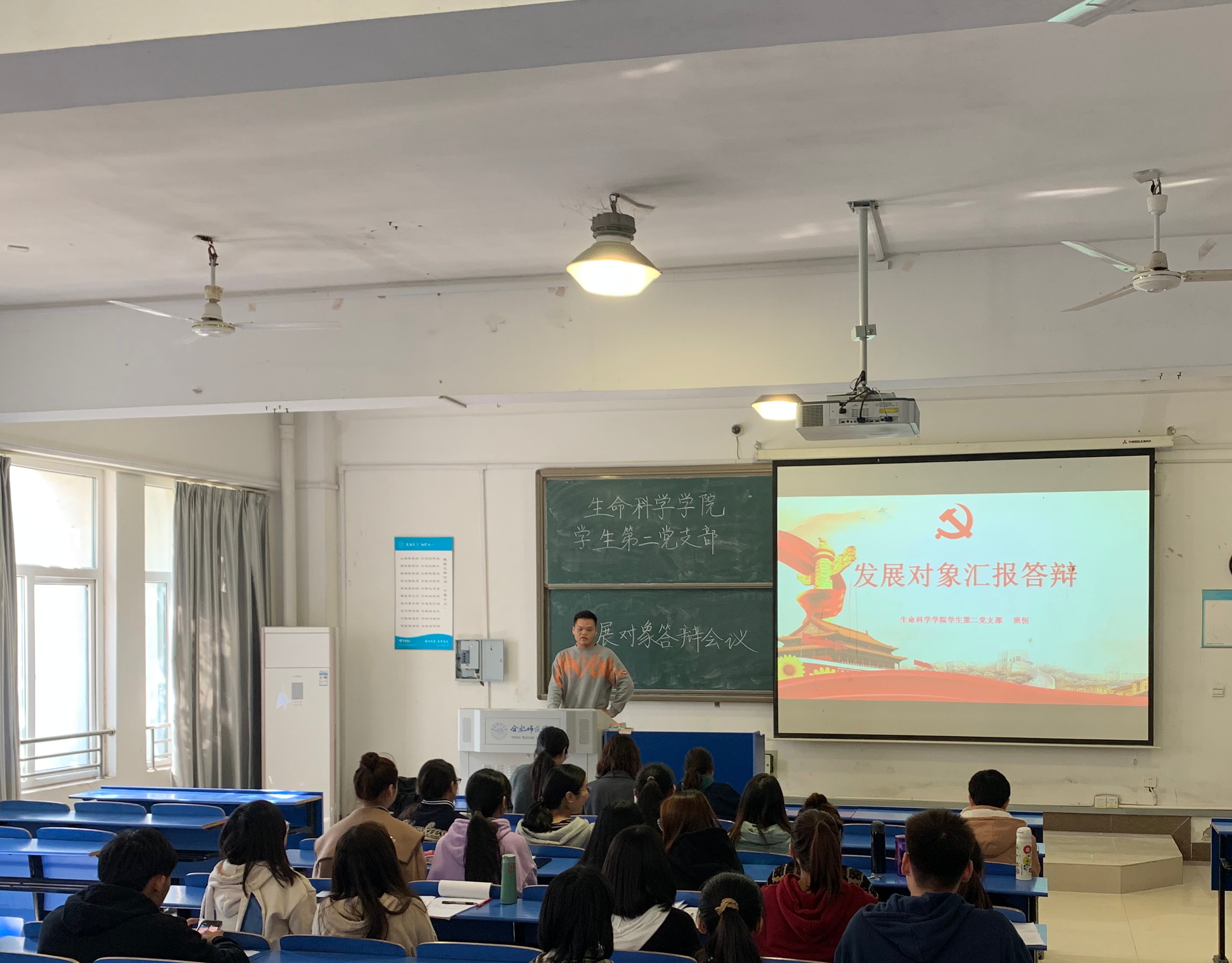 本网讯 11月12日,生命科学学院三个学生党支部分别在行知楼1502、逸夫楼A101、逸夫楼A109教室举行学生党员发展对象答辩会。生命科学学院党委书记郭桃芬、党委委员孙娴以及各党支部书记、党员教师担任答辩老师。