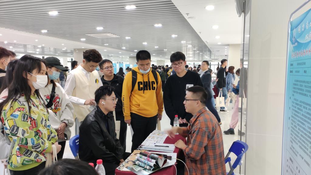 随后举行的招聘会,现场气氛热烈。毕业生们纷纷在用人单位展位前驻足,热情地和用人单位交流,了解企业的招聘需求和薪酬福利水平,积极投递简历并主动推介自己。活动现场共有来自中科大、合工大、安大等10所在肥普通本科高校就业工作人员和毕业生约上千人参加。