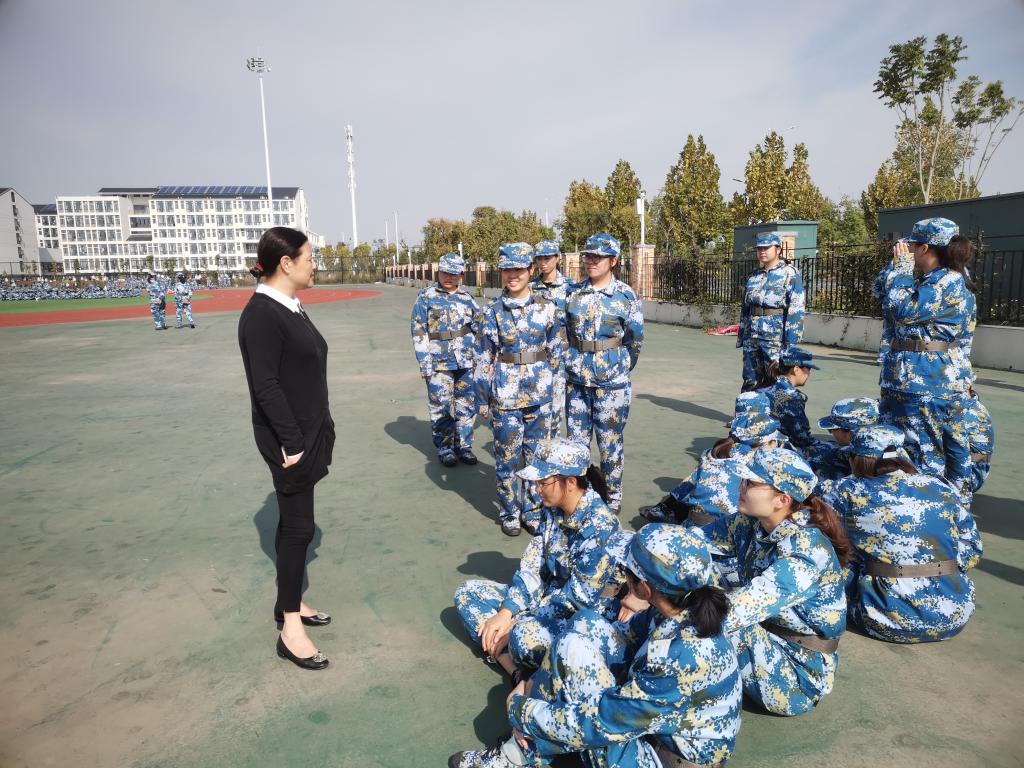 李新宇认真观看新生们的训练情况,对新生积极向上的精神状态表示赞扬。在新生军训休息期间,李新宇与同学们进行亲切交谈,询问同学们军训期间的身体健康状况,并叮嘱大家要注意保暖,保持充足睡眠,确保每位同学都能以一个健康的状态来完成每天的训练。随后,李新宇进一步询问军训工作的进展情况,并对教官们的细心指导表示衷心的感谢,她寄语新生,希望新生们能够培养吃苦耐劳的精神和优良作风,从而为后面的大学生活奠定良好基础。