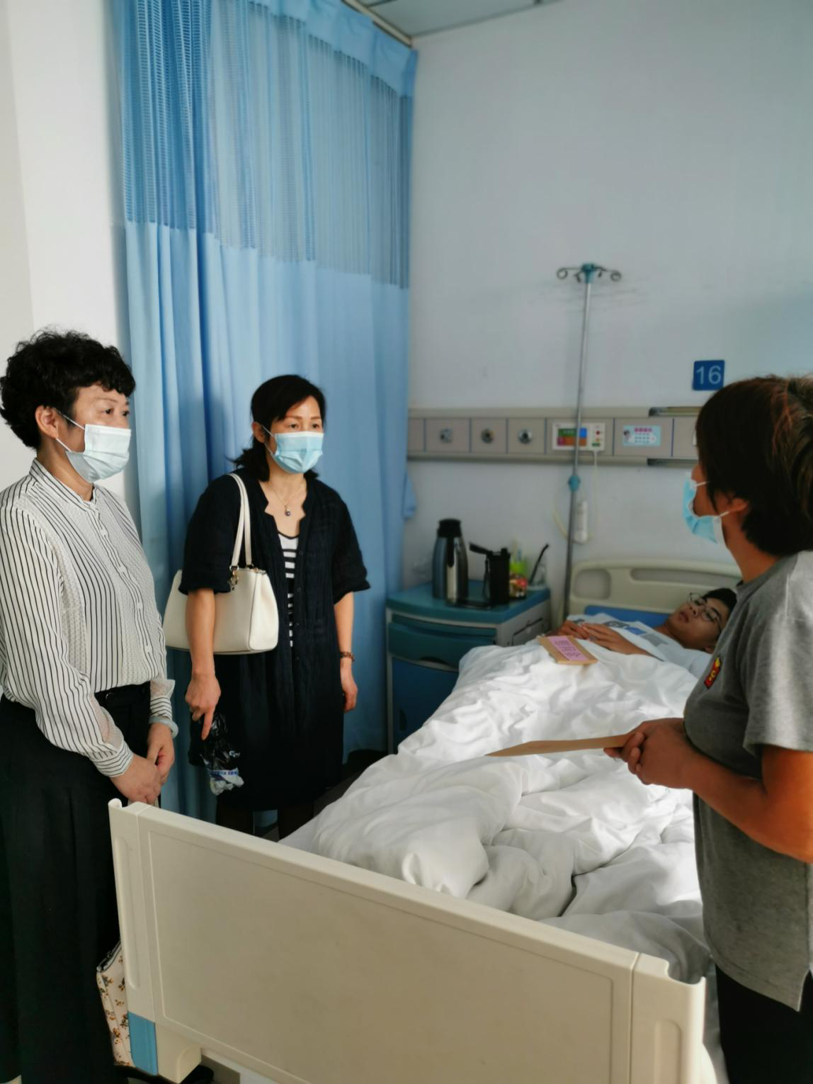 本网讯 9月30日上午,学院学生工作处处长陆涛、生命科学学院党委书记郭桃芬、学生处负责资助工作的老师苏炫以及生命科学学院2019级辅导员一行4人前往安徽医科大学第二附属医院,看望慰问生病住院的家庭经济困难学生余同学。