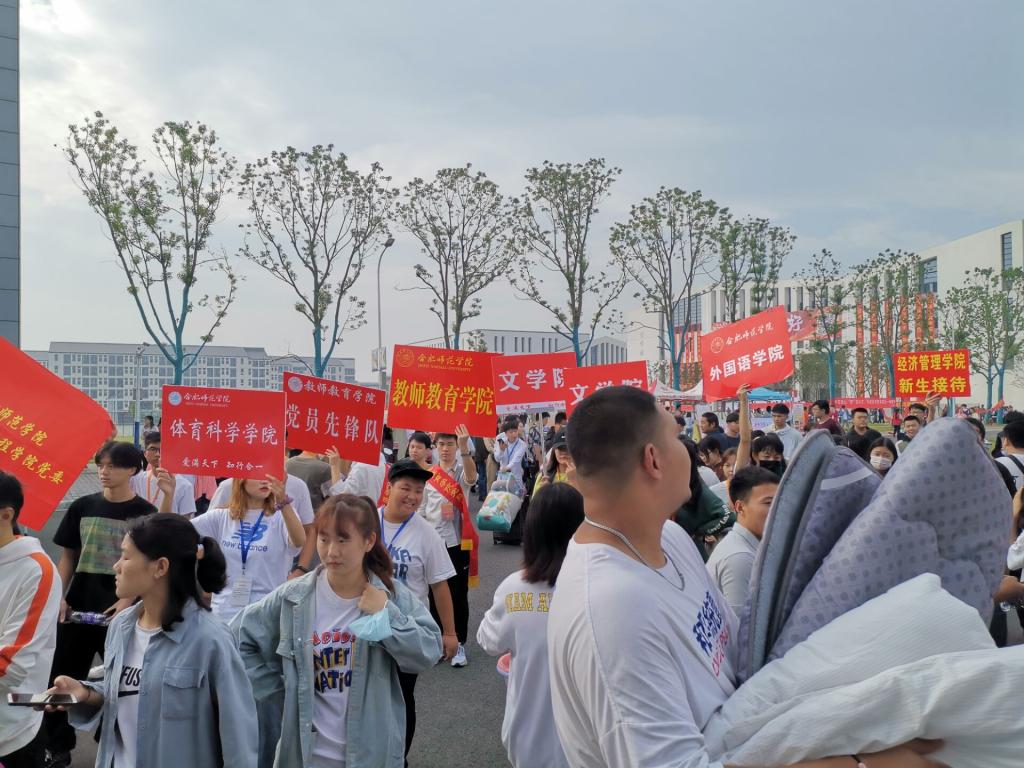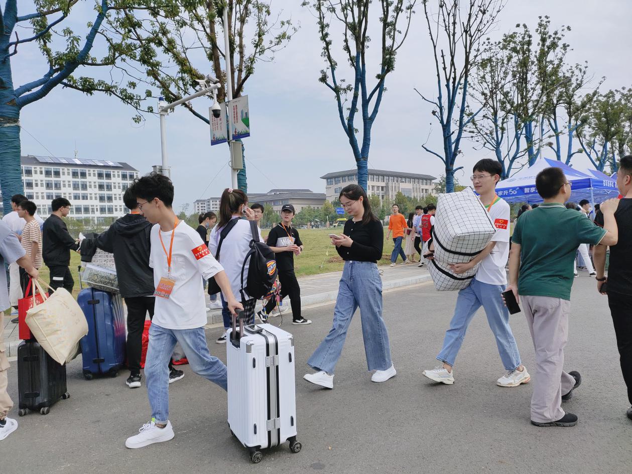 同学们一个个稚嫩的面庞,怀揣着对大学的憧憬步入了合师的大门。刚一入校,经过保卫处工作人员验证录取通知书和健康码后,手上的大包小包和行李箱就被一早等候的迎新志愿者们接过,帮助其送达新生报道处和学生寝室。根据疫情常态化的校园防控要求,家长不能进入校园,新生家长虽然不舍,但看到学校良好的服务和志愿者们的热情接待,均放心地离开了校园。
