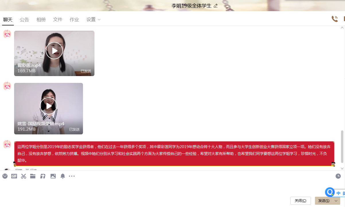 四是观看励志典型经验分享视频。为营造文学院学子勤奋学习、顽强拼搏、开拓进取的良好氛围,激励广大学生成长成才,发挥先进学生的榜样力量和导向作用,文学院邀请了17级编辑出版学霍彩莲和17级汉语言文学师范1班姚雪两位同学为大家分享了她们的学习和社会实践经验。姚雪跟大家分享了她的学习经验,讲述了自律的重要性,虽然现在在家上网课但也不能放松,教大家在大学里要转变学习态度,利用好课前几分钟,还有要学会运用思维导图来学习。霍彩莲从社会实践角度出发,讲述了她在参加社会志愿者服务、暑期行知学堂以及创新创业大赛的一些经验,激励大家遇到困难不要放弃,要相信自己,继续努力一切都会变得更好。