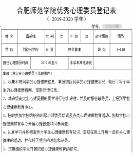 结合心理委员们上学年的工作开展情况,评选出1名“优秀心理委员”推荐上报。希望其他同学能以先进为榜样,做好自身心理健康维护的同时,努力为班级心理健康氛围的营造贡献自己的力量。