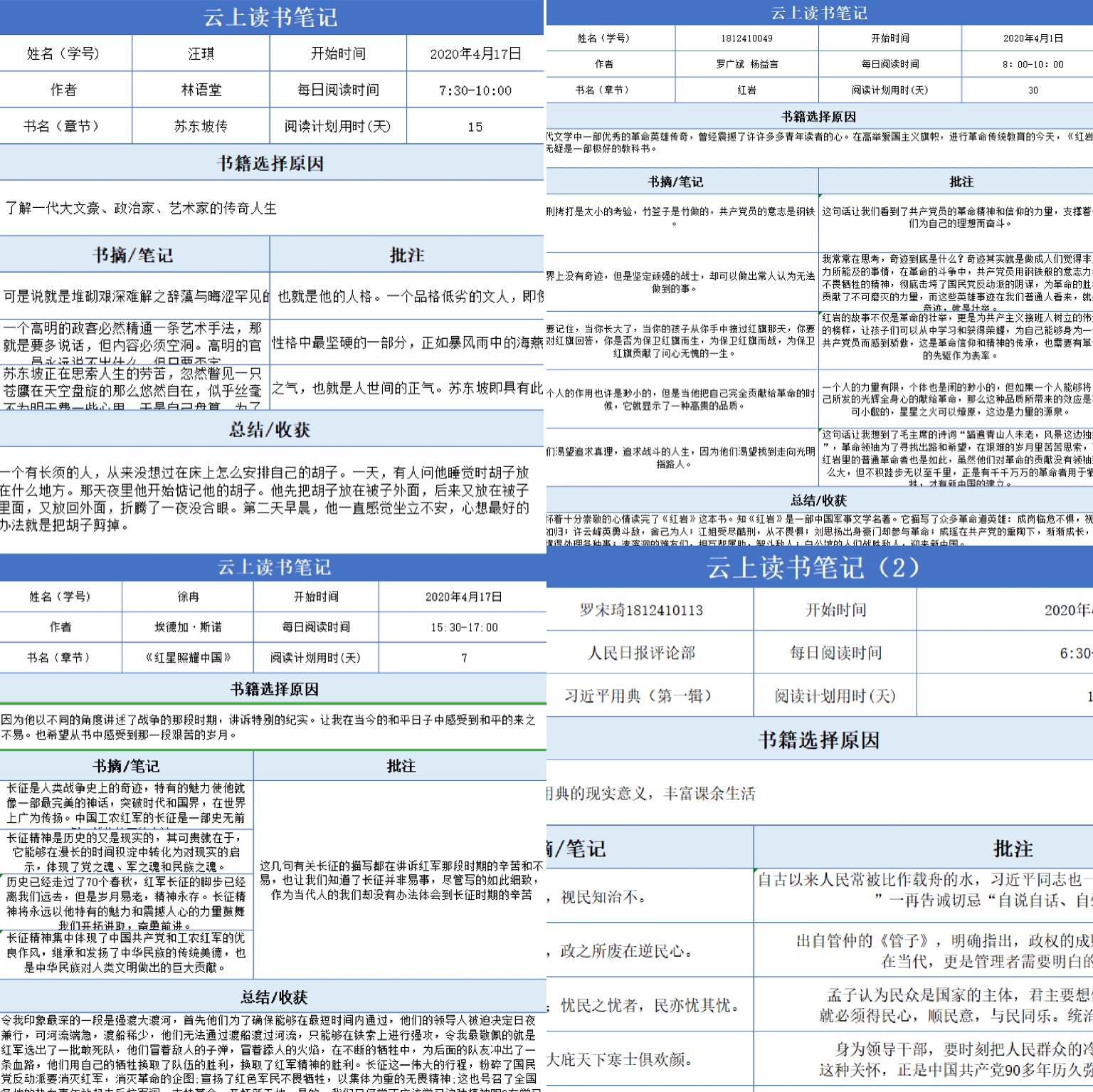 2018级音乐学杜王勖同学说,“在这个特别的时期,阅读与撰写读书笔记成为了日常的小期待,治愈了我们的焦虑的小情绪。在平时不能静心阅读的“大部头”,利用这个春天,竟然静静地阅读完了,感觉收获满满。”王健捷同学说:“读书不知春已深,一寸光阴一寸金,宅在家里时,写作是表达情绪的最好方式之一。来自内心最真切的情感,无需修饰便是最美的。”(音乐学院:许曦)