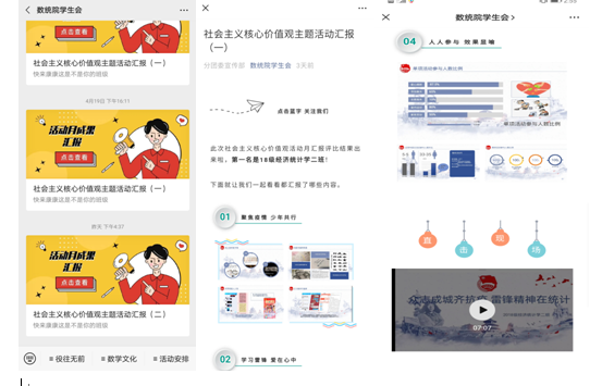 汇报结束后,数学与统计学院借助微信公众号对活动月标兵团支部和优秀团支部的汇报视频进行系列展播,进一步扩大了活动的影响力和宣传效果。