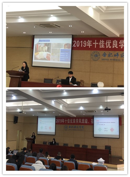 在2018—2019学年度优良学风创建的过程中,艺术传媒学院聚焦学风主题,注重创建过程,分别于2019年5月29日、31日举办院级“优良学风班级”、“优良学风宿舍”评选会,通过以PPT、作品展示等方式,最后根据对创建材料评选和同学们现场的汇报演讲,共评选出院级“优良学风班级”12个、“优良学风宿舍”12个。好中选优,11月份经过院级优良学风创建评选,推选2017级产品设计班、10栋250宿舍以及2016级动画三维班洪颖贤同学参加学校十佳优良学风创建评选。最终2017级产品设计班获得了学校“十佳优良学风班级”荣誉称号,10栋250宿舍获得“优良学风宿舍”优秀奖称号。