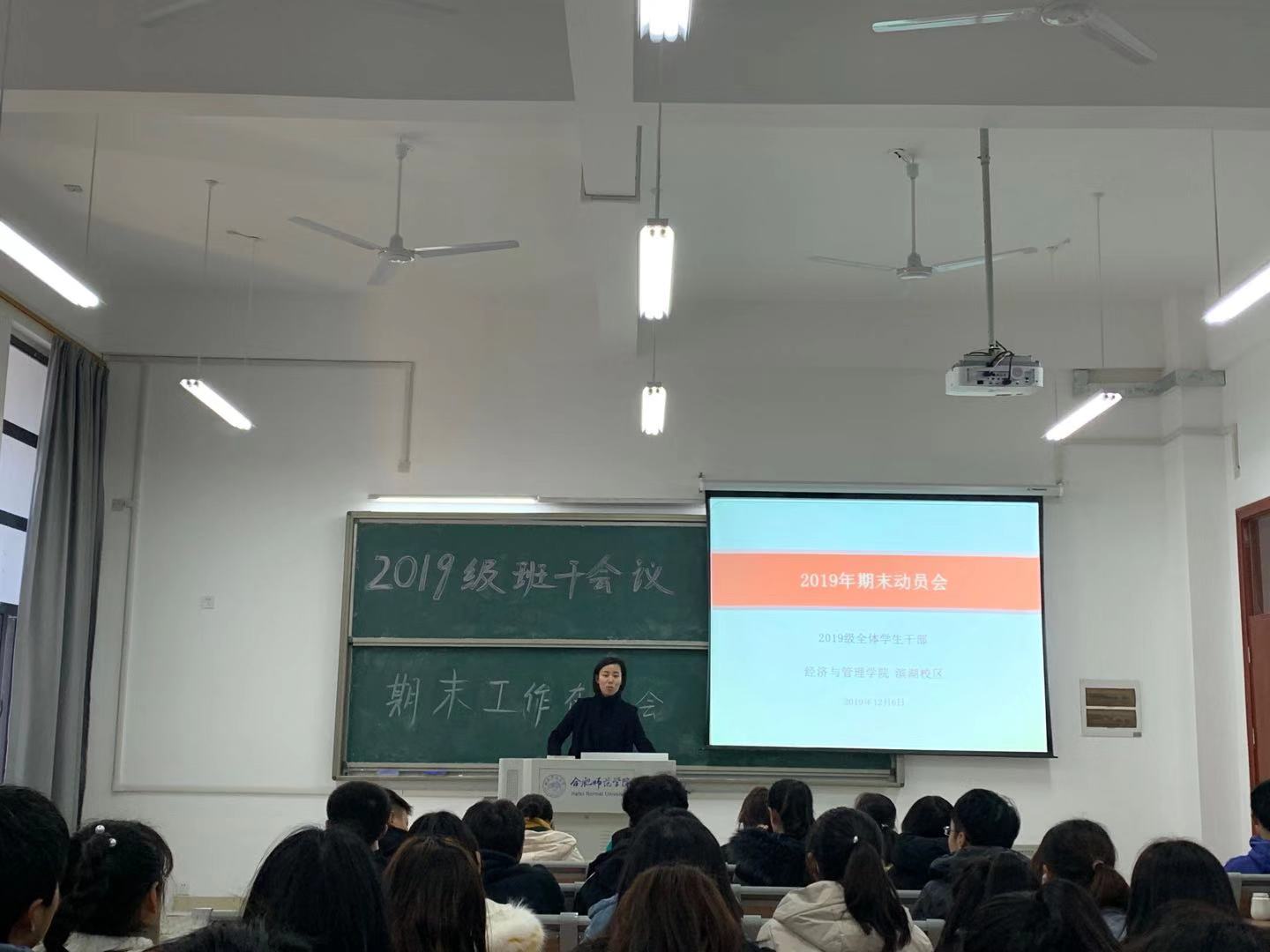 本网讯 12月6日下午,经济与管理学院召开了2019级班干会议,本次会议由辅导员陈梦莹老师、王瑞瑞老师主持,2019级全体班委和寝室长参加了本次会议。