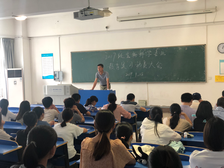 本网讯 为提高学生对教育实习工作的重视,以饱满的热情投入到实习当中。生命科学学院于9月18日在逸夫楼A101举行了17级生物科学师范班教育实习动员大会。院长徐忠东教授、副院长朱桂兰教授、教育实习的指导老师以及17级生科师范班全体学生参加了本次会议,会议由生物科学系主任孙娴主持。