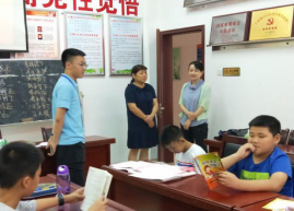 本网讯 7月23日上午,外国语学院辅导员兼古埂社区行知学堂指导老师周贵勤顶着酷暑前往合肥市上派镇古埂社区,看望慰问在这里开展行知学堂的小先生和小学员们。