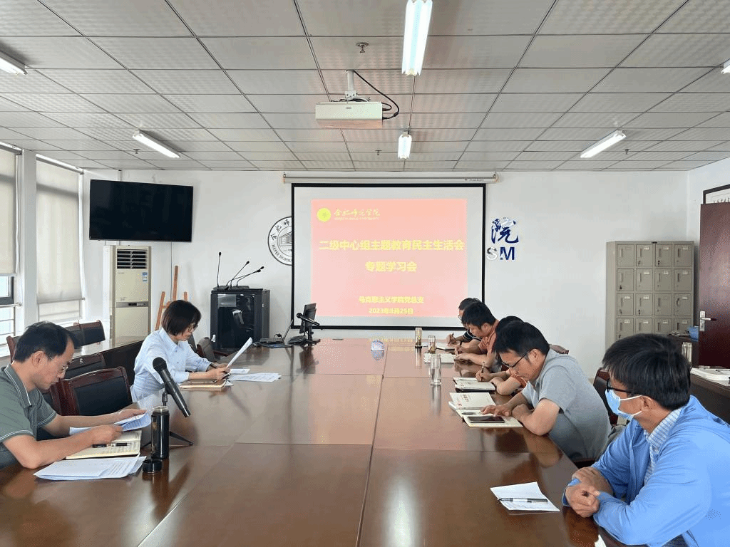 本网讯 8月25日上午,马克思主义学院在行知楼1610室举行二级理论学习中心组主题教育民主生活会专题学习会,会议由党总支书记刘艳主持,学院二级理论学习中心组成员、各党支部书记参会。
