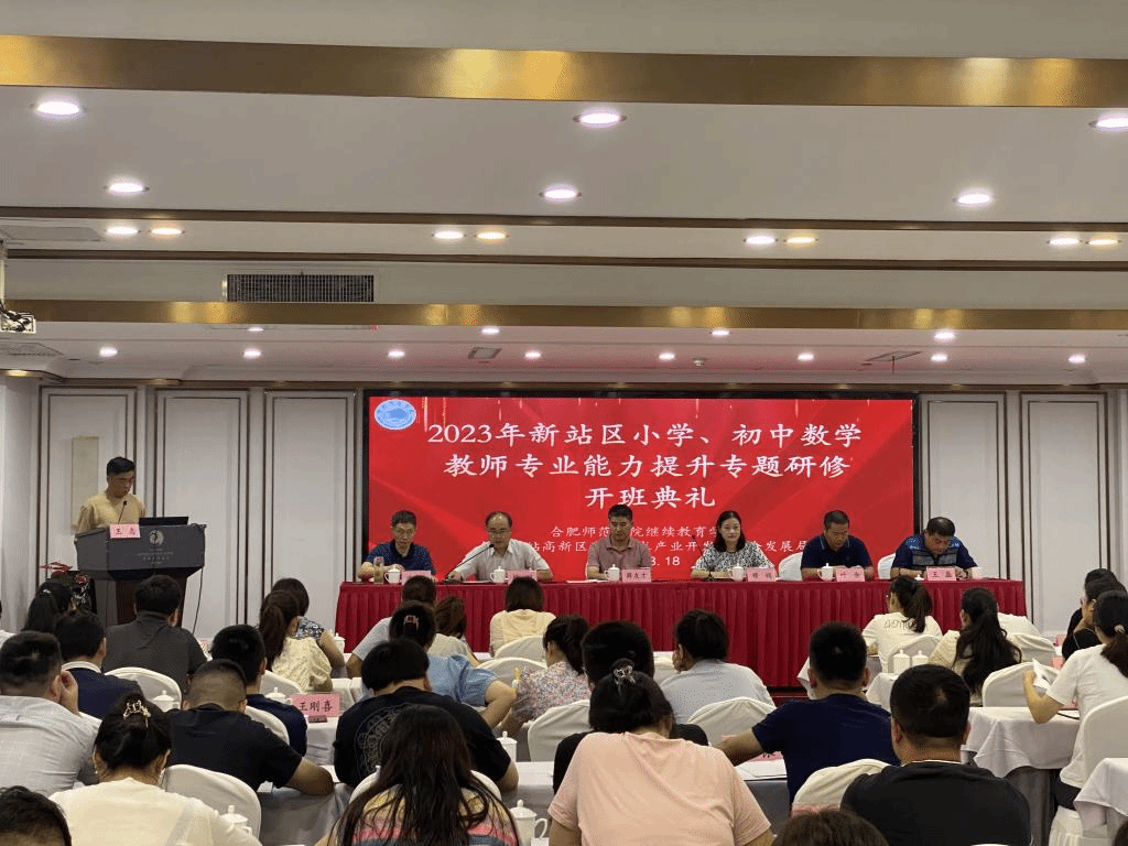 本网讯 8月18日上午,由beat365在线唯一官网承办的合肥新站区小学、初中数学教师能力提升专题研修班在源牌国际酒店举行开班典礼,数学与统计学院党委书记穆娟、新站区教研室小学数学教研员薛友才、初中数学教研员叶余、数学与统计学院副院长杨刘、继续教育学院副院长王磊、项目执行负责人沈南山以及全体参训学员出席典礼,典礼由班主任王志主持。