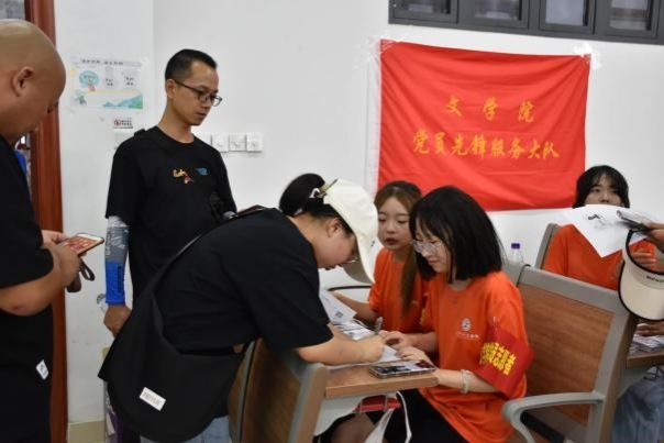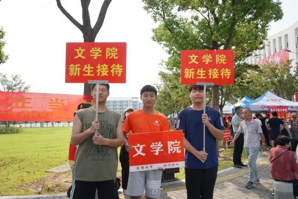在校园里,随处可见身着统一着装的文学院志愿者,迎新现场靓丽的风景线。为新生指示道路、搬运行李、熟悉入学流程,受到家长和新生满满的赞。