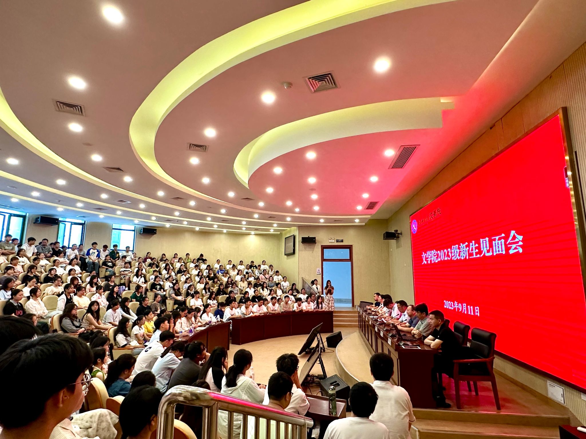 本网讯 为上好新生入学教育第一课,帮助新生坚定理想信念、转变角色定位、开启学业规划。9月11日上午,文学院在滨湖校区学术报告厅举行2023级新生见面会,文学院党委书记许锃、院长何旺生、党委副书记夏娟、副院长甘松和各系主任、党支部书记、新生辅导员及2023级普通本科新生近300人参加见面会。