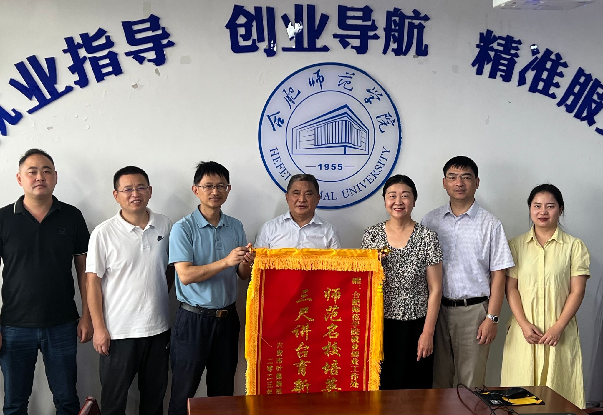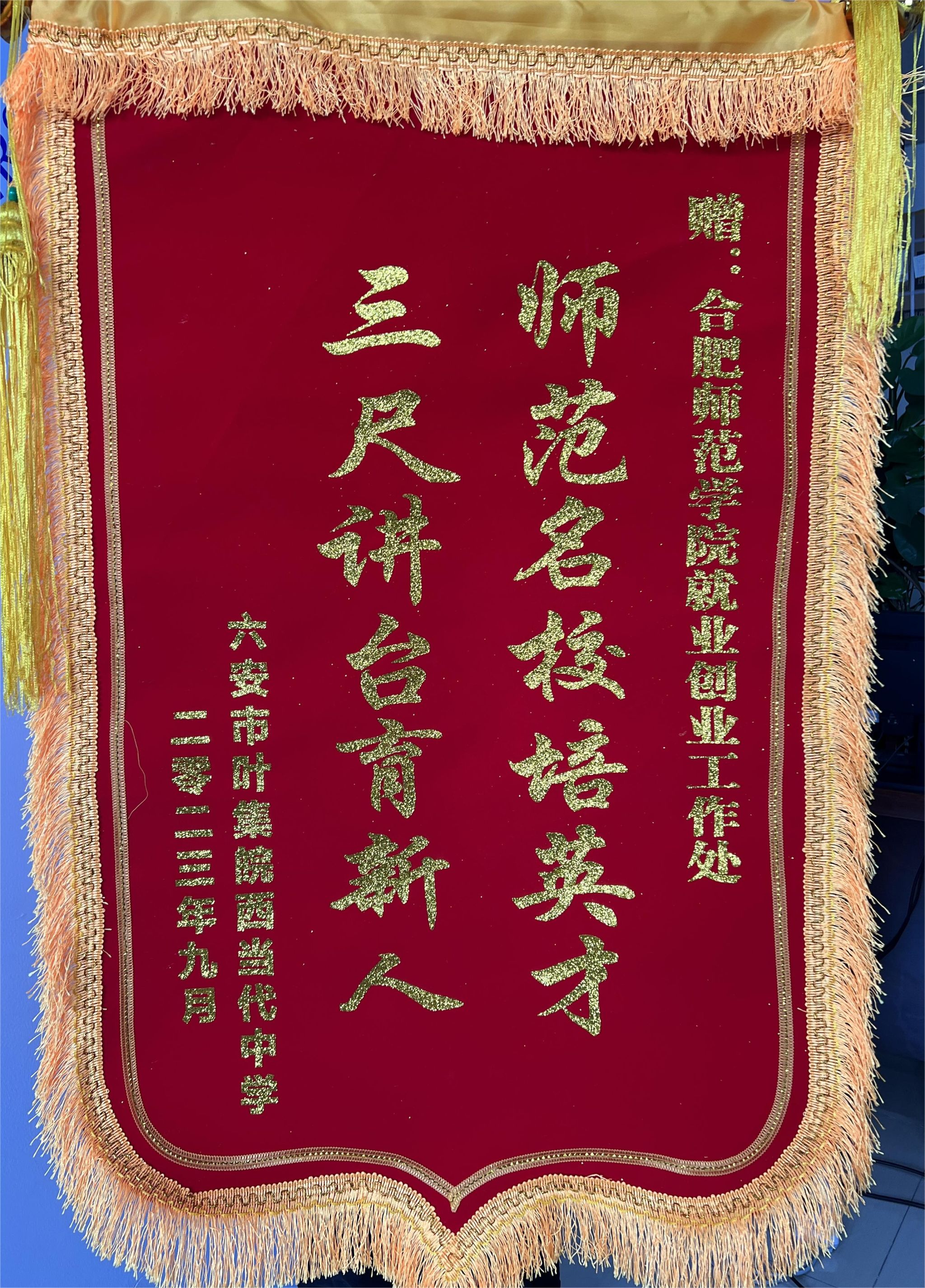 郭世珍介绍了皖西当代中学的基本情况,学校招聘了beat365在线唯一官网2023届多名毕业生,这批毕业生在工作中表现优异;为感谢beat365在线唯一官网为当代中学培养了优秀人才,特代表中学赠送锦旗。