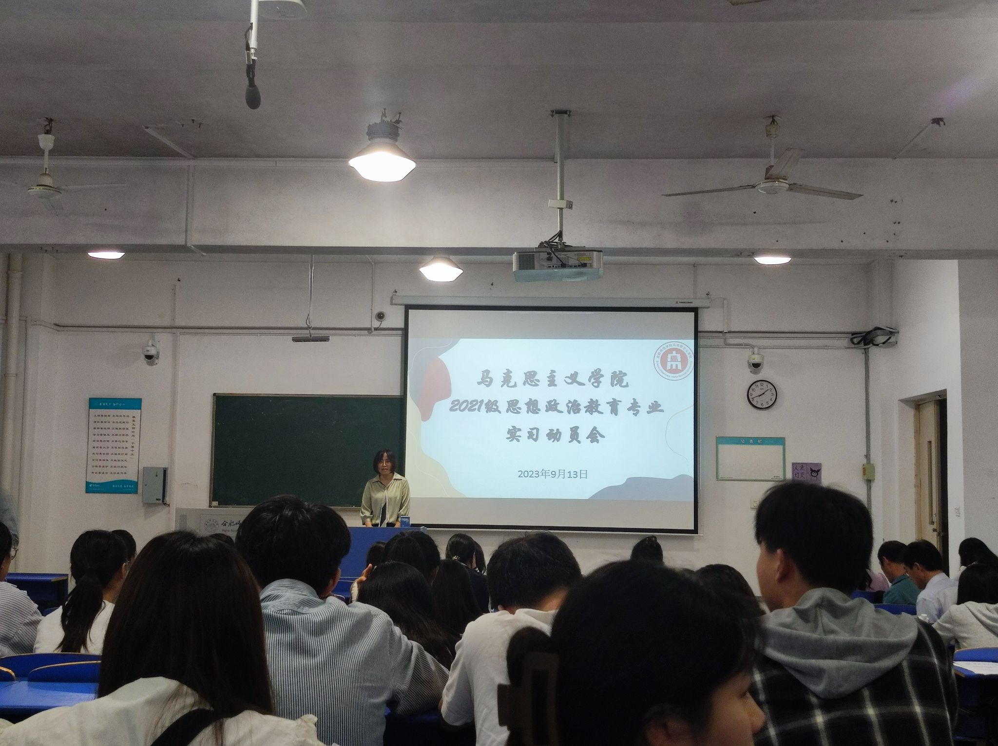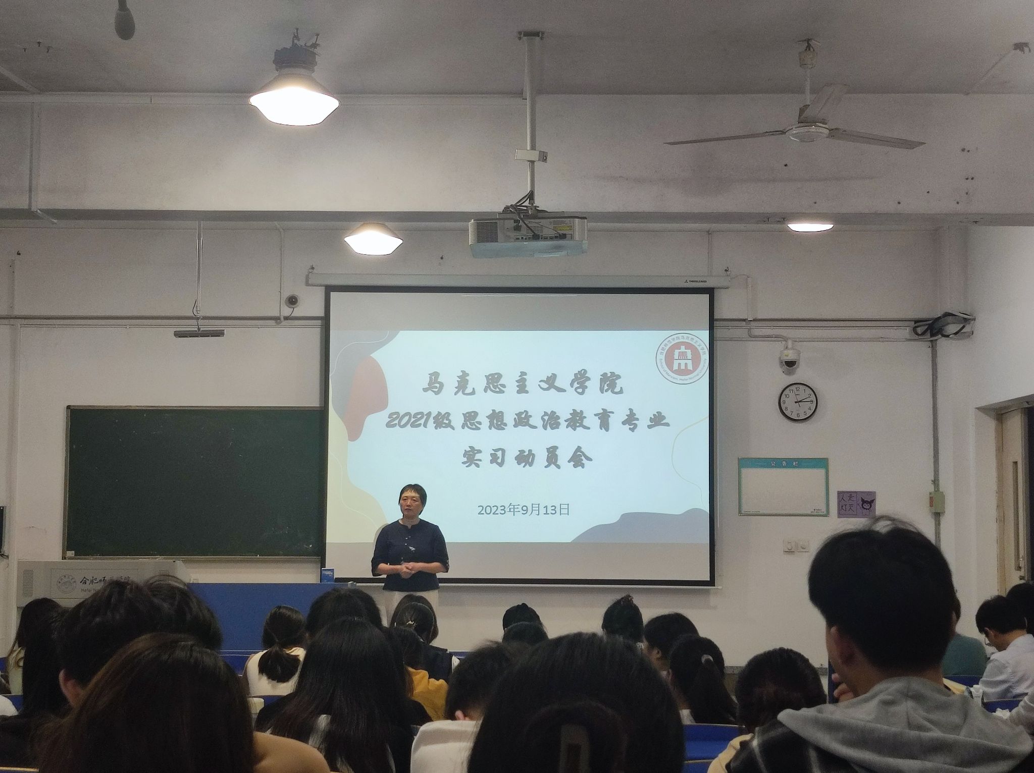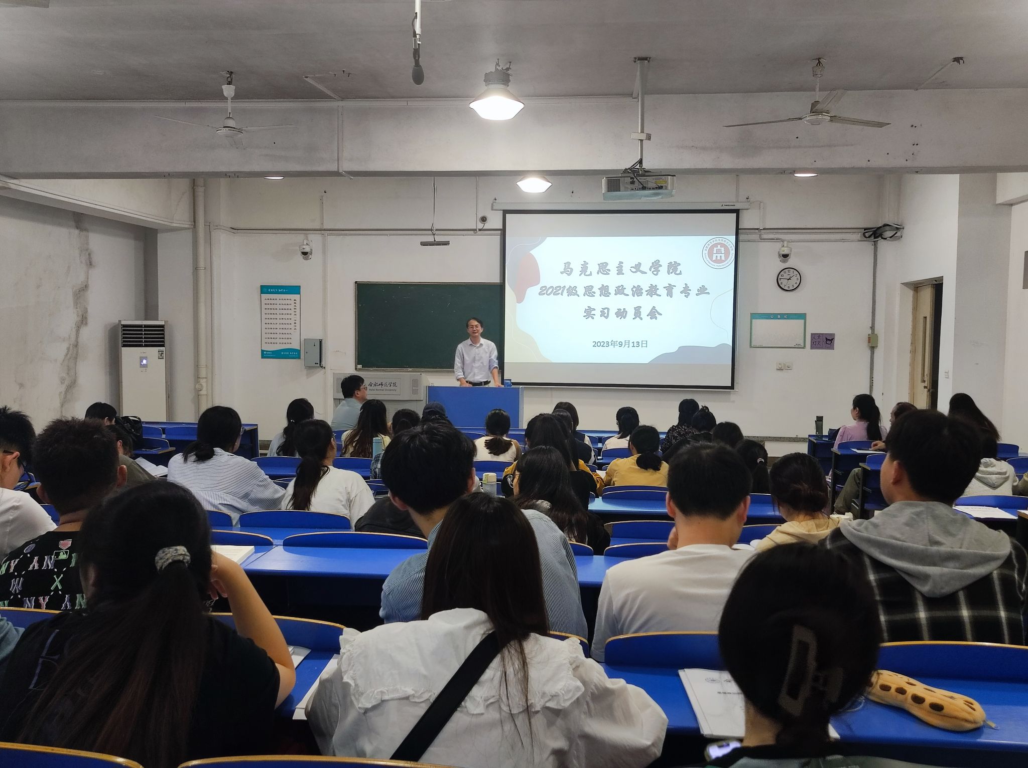 本网讯 为进一步做好教育实习工作,9月13日下午,马克思主义学院在逸夫楼A109召开2021级思想政治教育专业实习动员大会。马克思主义学院党总支书记刘艳、副院长方政、实践教学部主任魏兵、实习指导老师及2021级全体学生出席,会议由政法系主任周继祥主持。