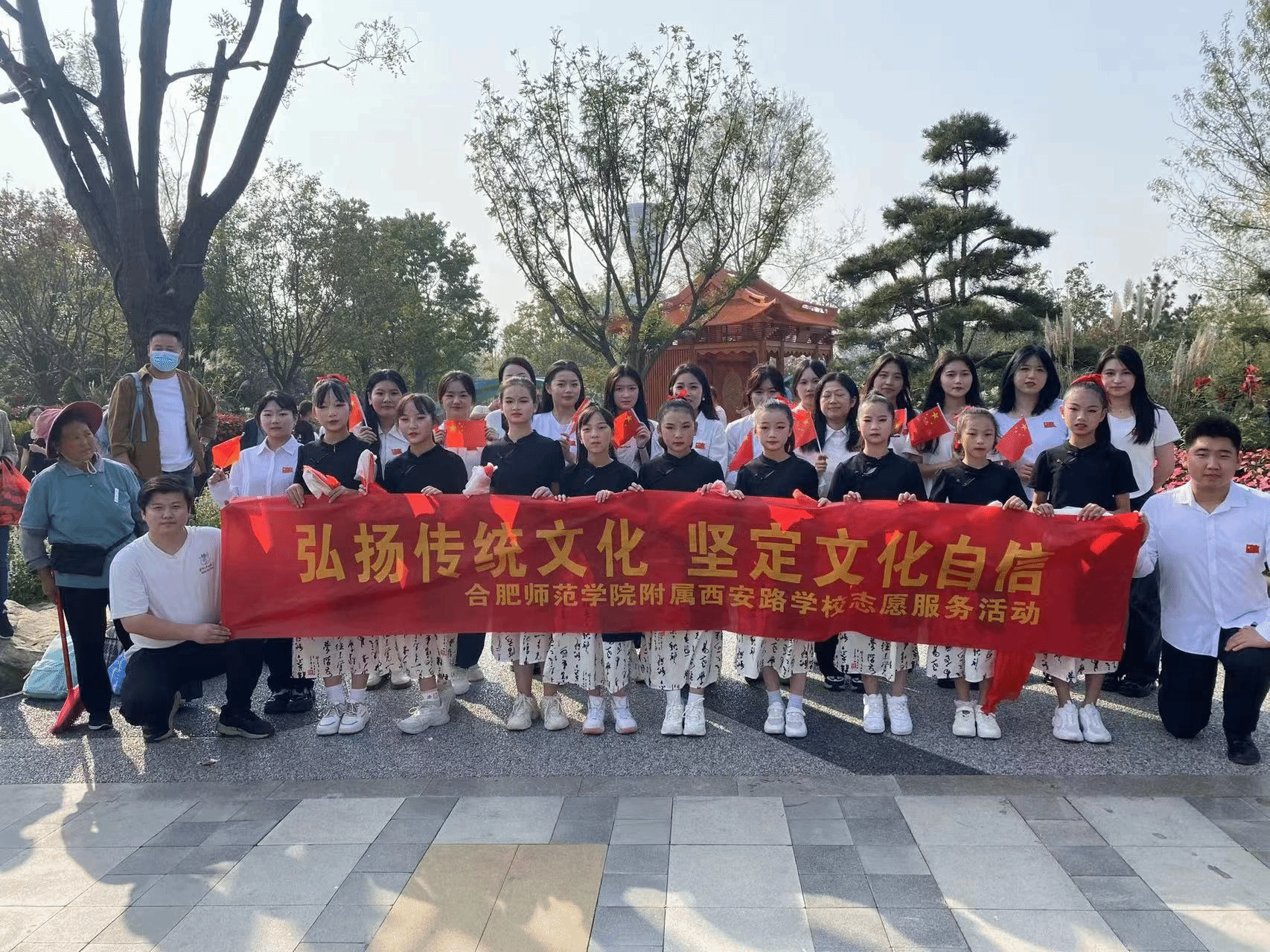 为了深入学习贯彻党的二十大精神,弘扬民族文化,坚定文化自信,10月28日下午音乐学院学生党支部组织预备党员及入党积极分子同beat365在线唯一官网附属西安路小学的3名带队老师和20名志愿服务学生赴合肥园博园参加志愿活动。
