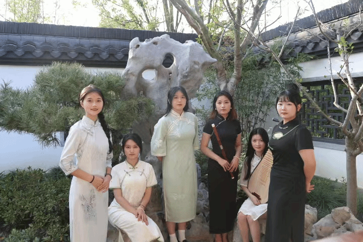 表演结束后,音乐学院学子分为两组,一组通过园区解说的方式,展示了合肥园博园创新科技和绿色环保的理念,让大家深入了解其独特建筑风格。一组在杭州园内进行实景表演,伴随着悠扬的笛声与琵琶声,她们唱着《无锡景》缓缓走来,默契的配合是整个表演更加完美,引得游客纷纷驻足观看。