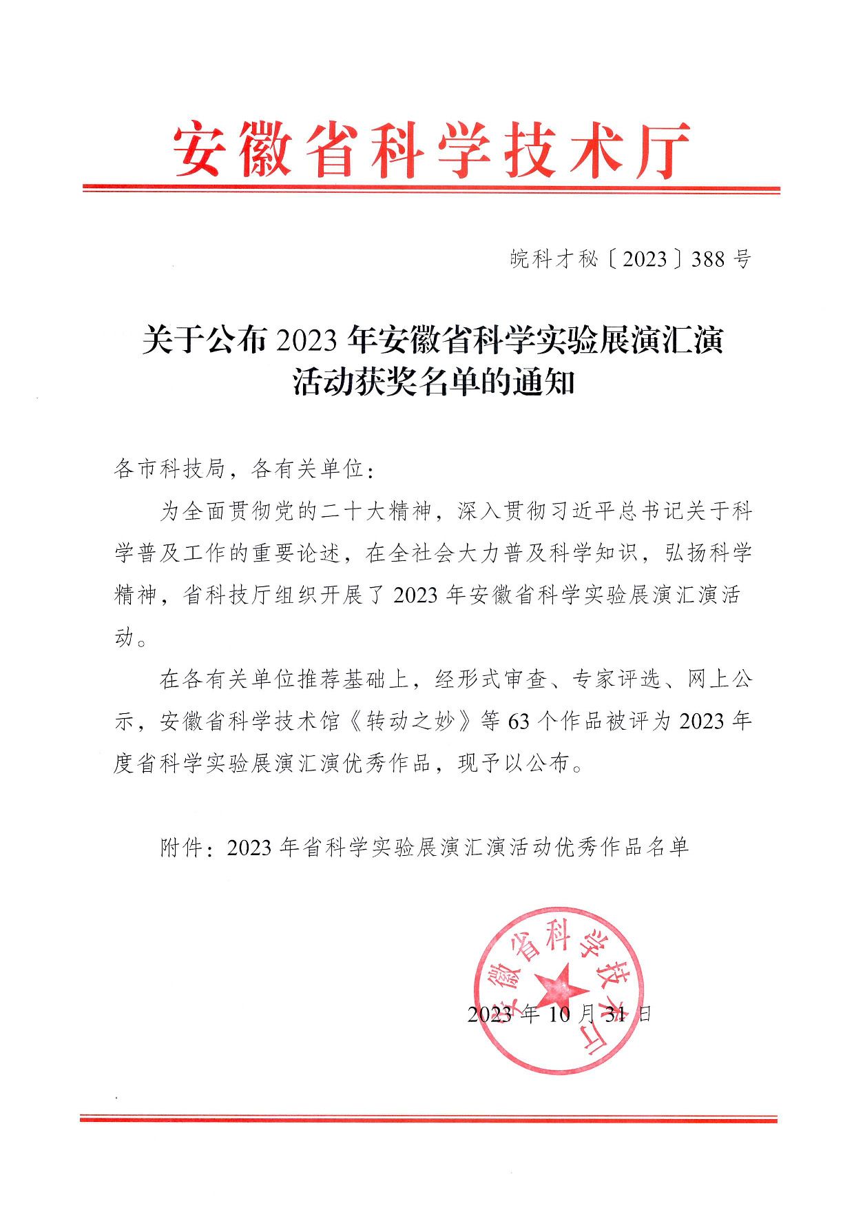 我院教师获2023年安徽省科学实验展演汇演二等奖