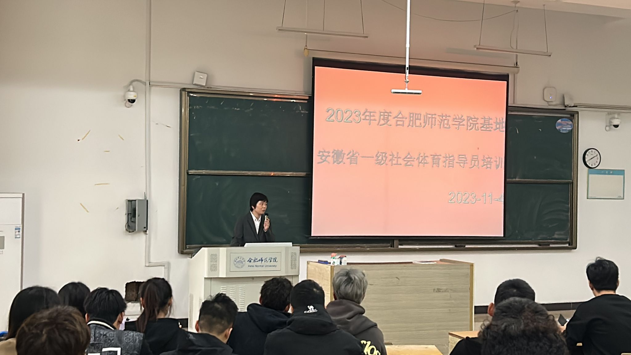 社会体育指导员队伍建设作为落实群众体育工作的重要抓手,是全民健身公共服务体系不可或缺的重要力量,为发展我国体育事业、增进公民身心健康、提高生活质量,推动社会主义精神文明建设,11月4日上午,由体育科学学院承办的2023年安徽省一级社会体育指导员培训班在学院锦绣校区博约楼101教室开班,体育科学学院副院长席莉教授及本次培训班管理团队成员参加开班式。