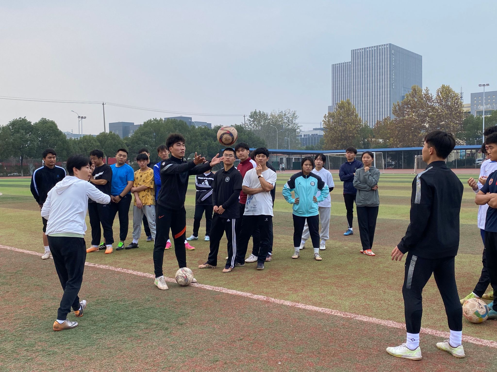 开班式后,全体参训成员在博约楼南门合影留念。(体育科学学院)