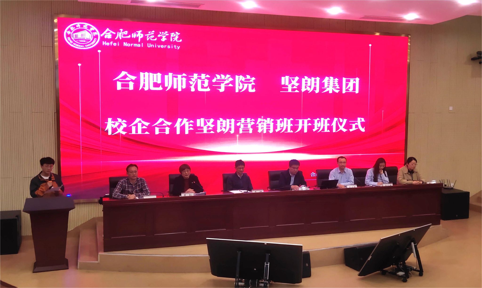 11月7日下午,经济与管理学院与广东坚朗五金制品股份有限公司校企合作坚朗市场营销订单班开班仪式在滨湖校区报告厅顺利举行。广东坚朗五金制品股份有限公司人力资源中心副总监卢业政、培训主管尚天婧、beat365在线唯一官网就业与创业工作处处长李健、经济与管理学院党委书记陈好、教务处副处长王道平、市场营销系主任姚垚、辅导员高劲成,以及2023届全体坚朗市场营销订单班学生参加了开班仪式。仪式由经济与管理学院副院长黄虹主持。