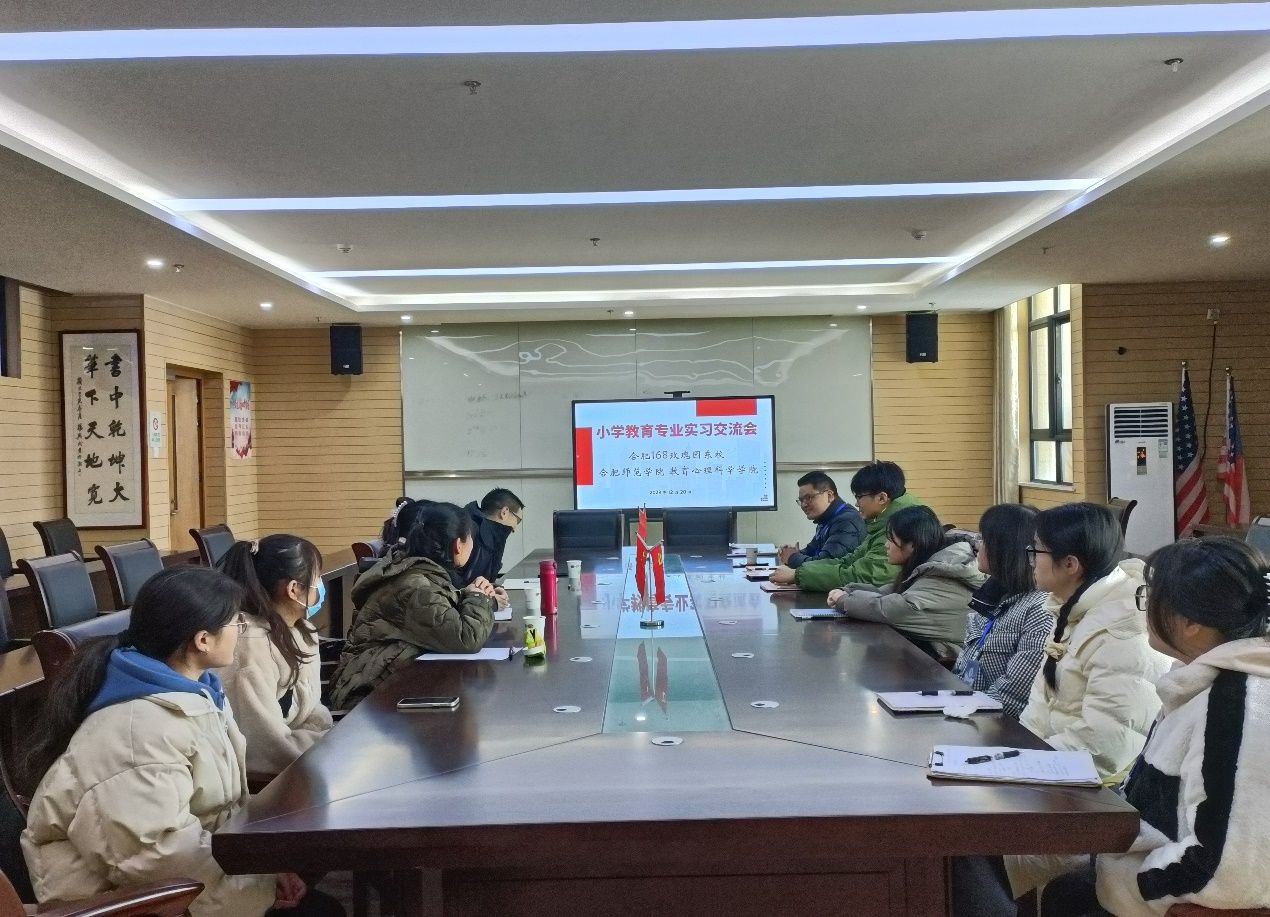 12月20日上午,教育与心理科学学院小学教育专业实习走访交流座谈会在合肥一六八玫瑰园东校会议室举行。合肥一六八玫瑰园校区东校教务处主任曾元元、小学教育系副主任唐银、实习指导教师张珍珍、实习小组各成员参加交流会,会议由教育与心理科学学院副院长胡连峰主持。