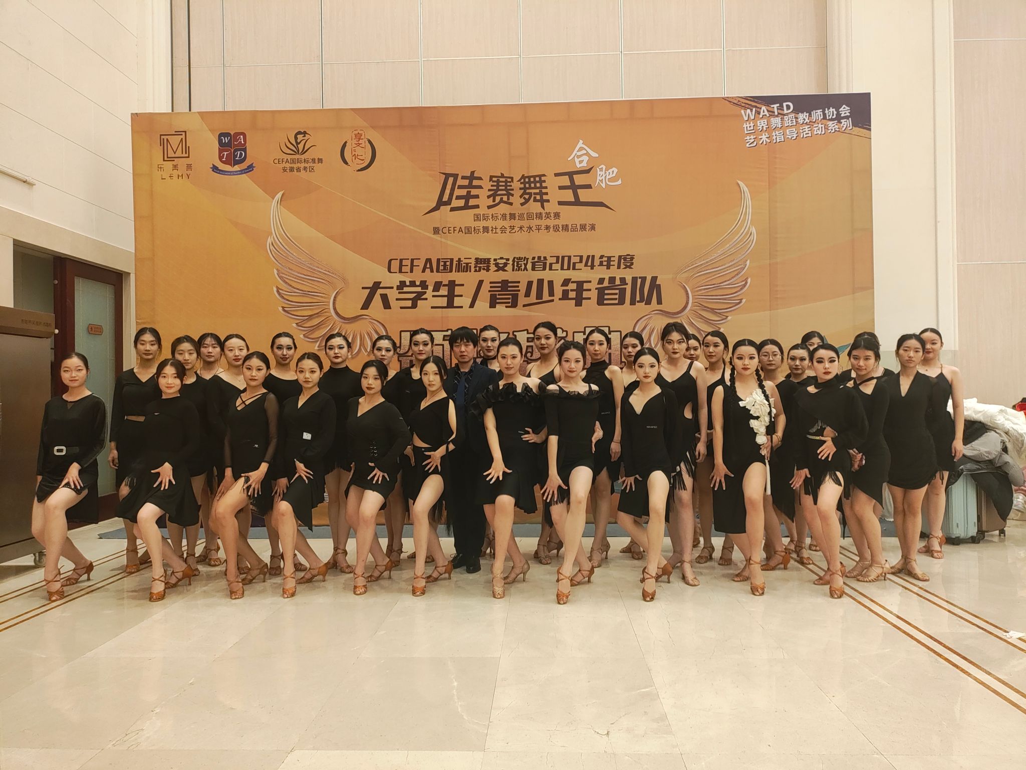 12月23日,由中国艺术职业教育学会标准舞专业委员督导,WATD 世界舞蹈教师协会指导,中国艺术职业教育学会主办,安徽享文文化传播有限公司承办的哇赛舞王国际标准舞巡回精英赛在合肥市白金汉爵大酒店举行。本次比赛吸引了来自上海、江苏、湖北、江西、山东、安徽等全国各地近百支代表队3600余名选手参赛。我院公共体育舞蹈队代表学校参赛获得佳绩。