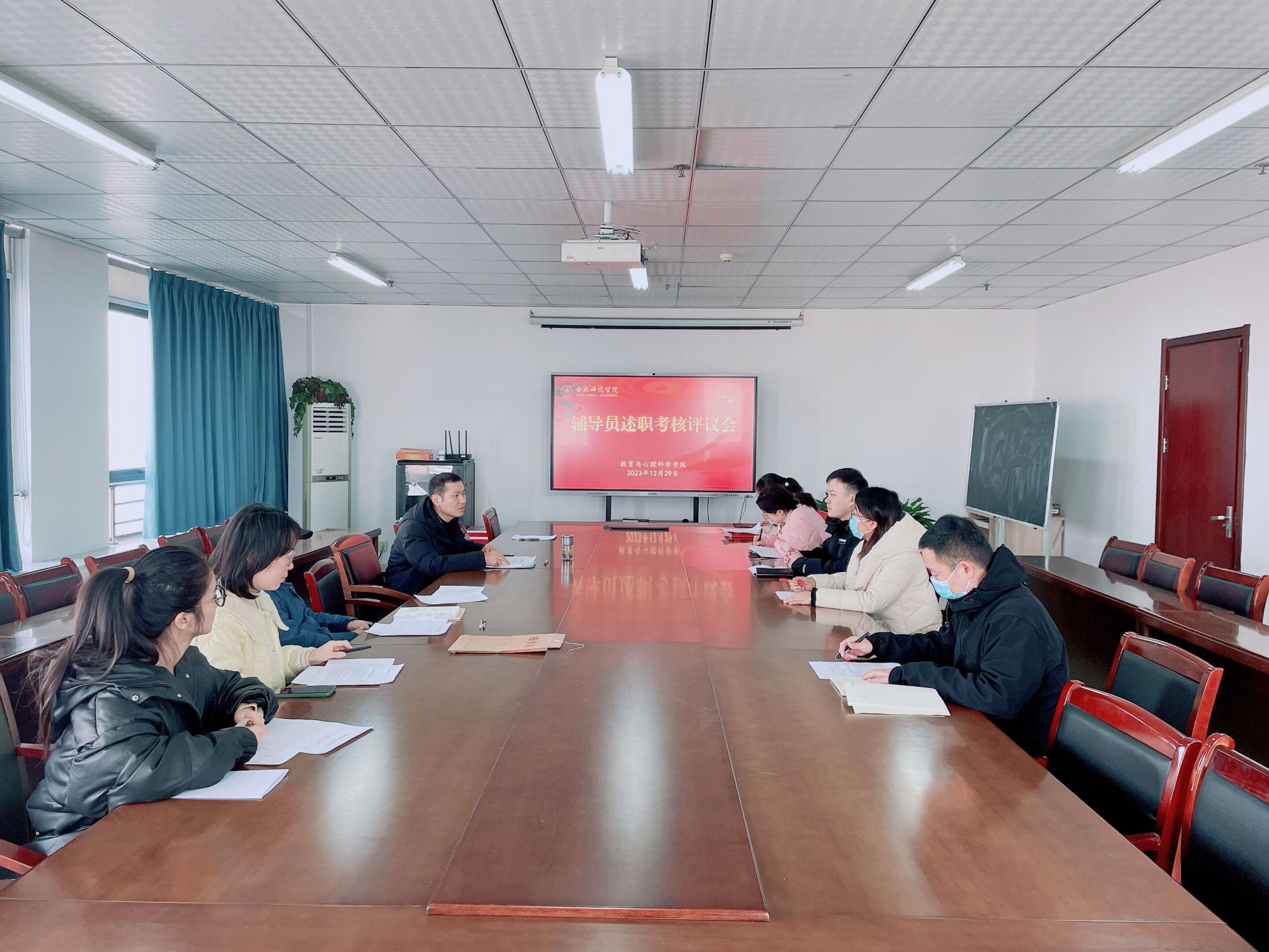 为深入学习贯彻习近平新时代中国特色社会主义思想和党的二十大精神,加强学生工作队伍建设,充分发挥辅导员考核的激励导向作用,12月29日,教育与心理科学学院在锦绣校区行知楼710会议室召开2023年度辅导员述职考核评议会。教育与心理科学学院党政班子成员、系主任、管理人员代表,专兼职辅导员参加考核评议会,会议由学院党委副书记陈帅主持。