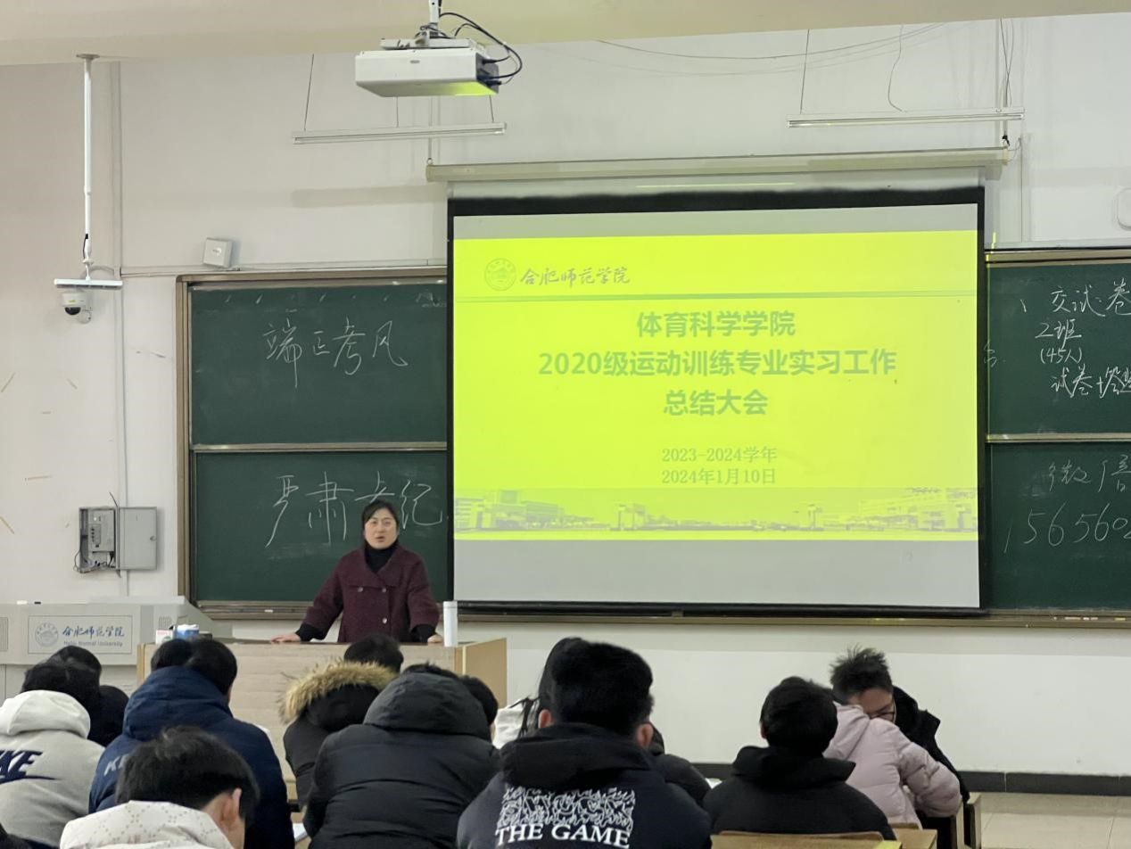 1月10日上午,体育科学学院2020级运动训练专业实习总结大会在博约楼101教室召开。运动训练系党支部书记陈秀、运动训练系副主任廖顺建、毕业班辅导员张康康及2020级运动训练专业全体学生参加总结大会。