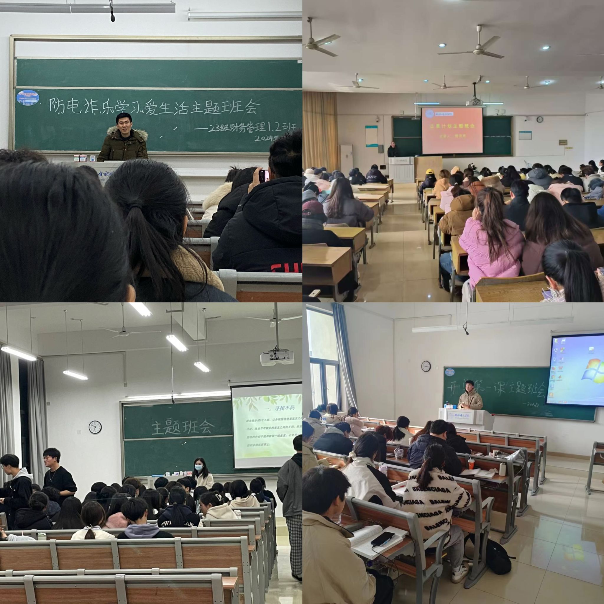 各班级根据具体情况就上学期班级总结、新学期学习展望以及未来规划等内容进行探讨。大一、大二年级各班围绕端正学习态度,建设良好班风学风为重点,召开主题班会,深入展开交流,辅导员老师积极引导学生要正确对待课堂笔记,集中精力学习,提高课堂效率;大三、大四年级各班围绕职业规划和就业创业指导服务为主题,开展班会进行交流,并邀请优秀毕业生向同学们介绍了考研、考公的学习方法,就业的方向机构以及出国经验,解答了同学们的问题。