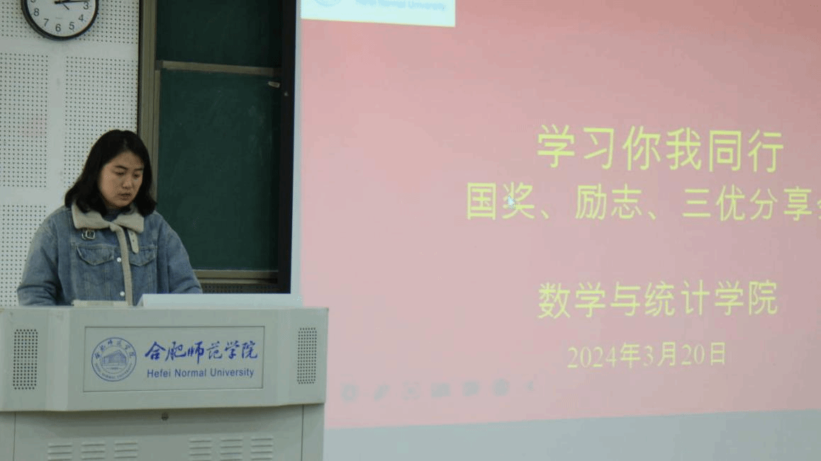 为发挥典型示范引领作用,激发学生学习动力,提升学风建设效果。3月20日下午,数学与统计学院在滨湖校区博约楼D101举办"学习你我同行"学习经验分享会。本次活动邀请四名国家奖学金、励志奖学金、十佳优良学风先进个人获得者进行学习分享。分享会由辅导员刘全亚老师主持。