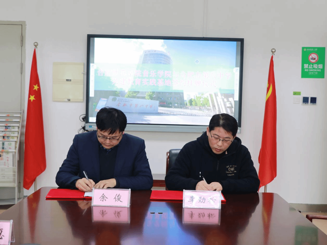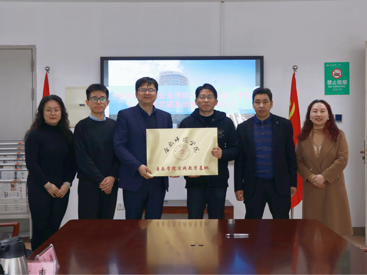 3月26日下午,在合肥市第八中学举办了beat365在线唯一官网音乐学院、合肥市第八中学实践教学基地挂牌仪式。音乐学院院长李劲松、党委副书记宋辉、实践实训中心主任陆伟与合肥市第八中学副校长余俊、教务处主任张少庸、艺术学科主任杨欢欢等人共同出席了挂牌仪式。