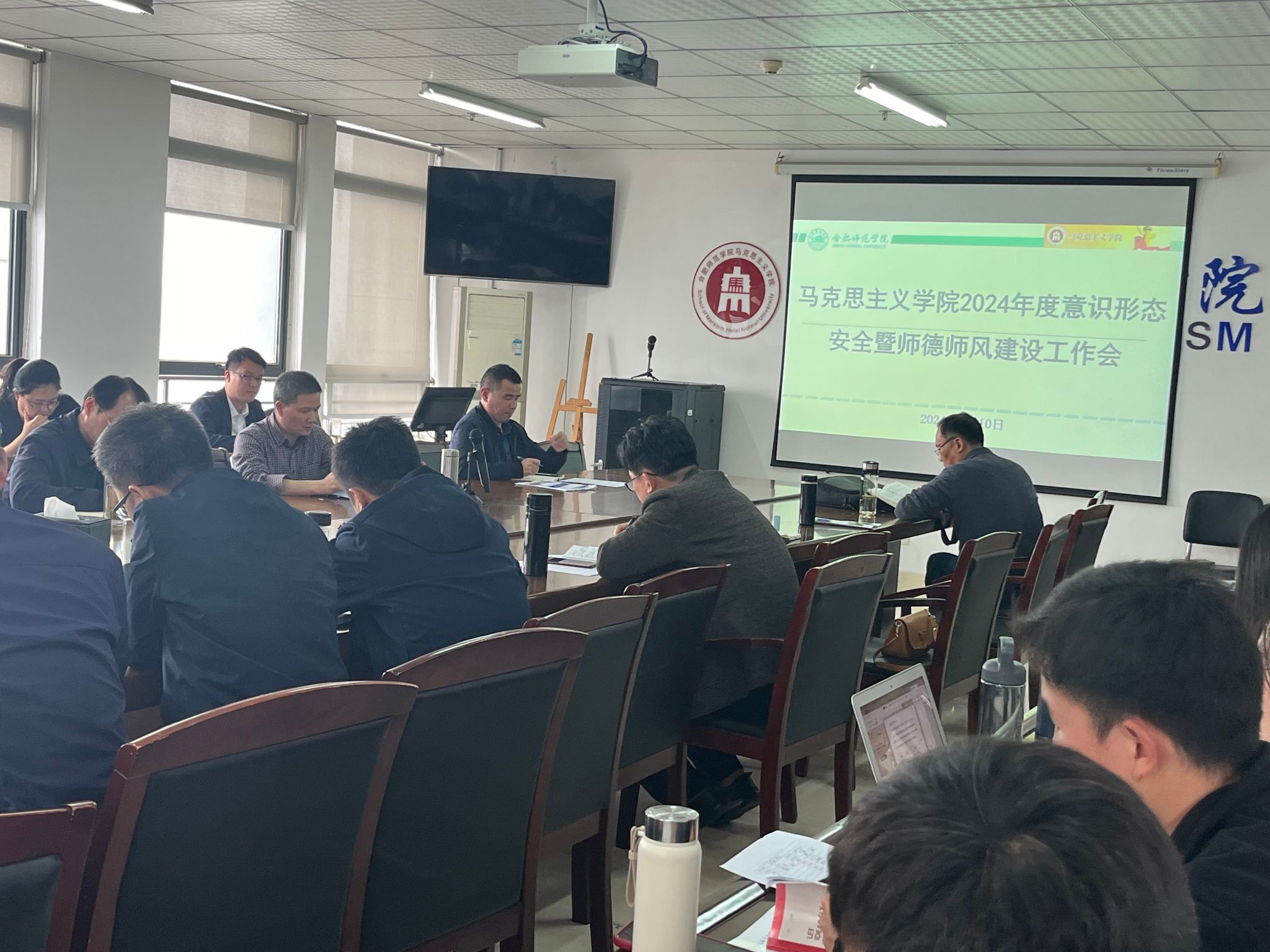 4月10日下午,学院召开2024年度意识形态安全暨师德师风建设工作会。院党政班子成员及全体教职工参加会议。