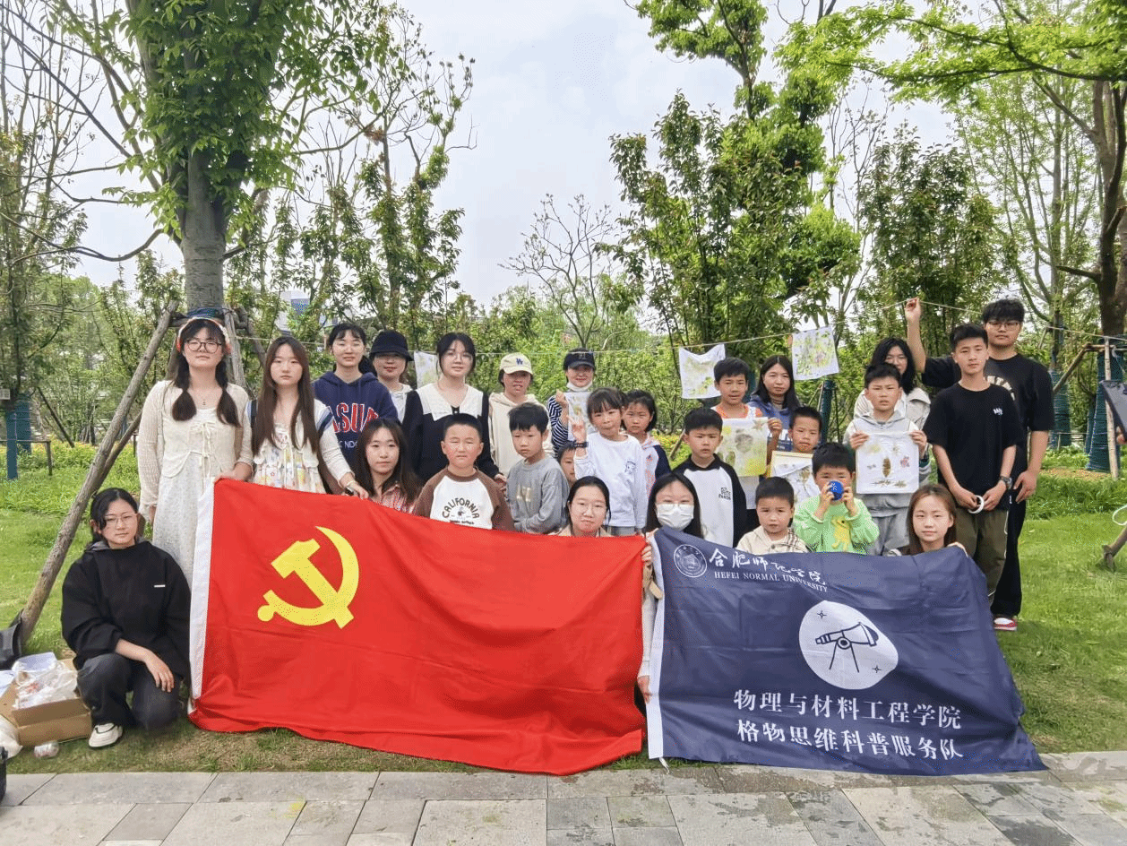 为提升青少年科学素养,激发科学探索热情,提高保护生态环境的意识,4月14日,物理与材料工程学院“格物思维”科普服务队联合合肥方兴社区在骆岗公园组织开展“探秘植物世界”植物认知科普研学公益活动。科普服务队青年志愿者们作为“特别导游”带领社区儿童开启植物认知之旅。