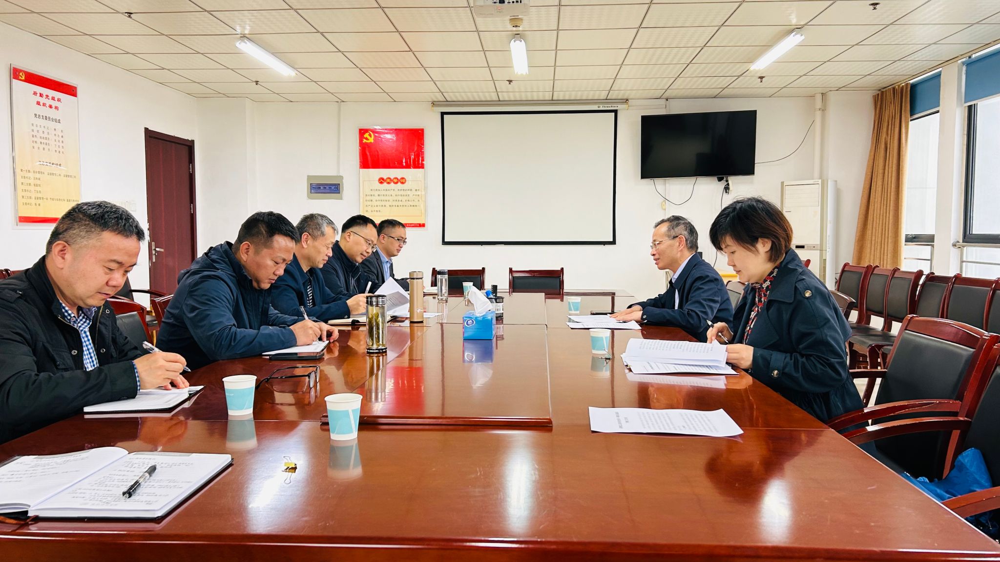 傅民汇报了后勤党总支自院党委巡察工作反馈会后整改进展。后勤党总支认真制订了巡察整改工作方案,成立了整改工作领导小组,建立了整改工作台账,明确了整改责任人;为压实工作责任,总支与整改责任人和牵头人还签订了整改任务书。傅民还简要报告了整改的工作任务的完成情况及下一步的工作思路。