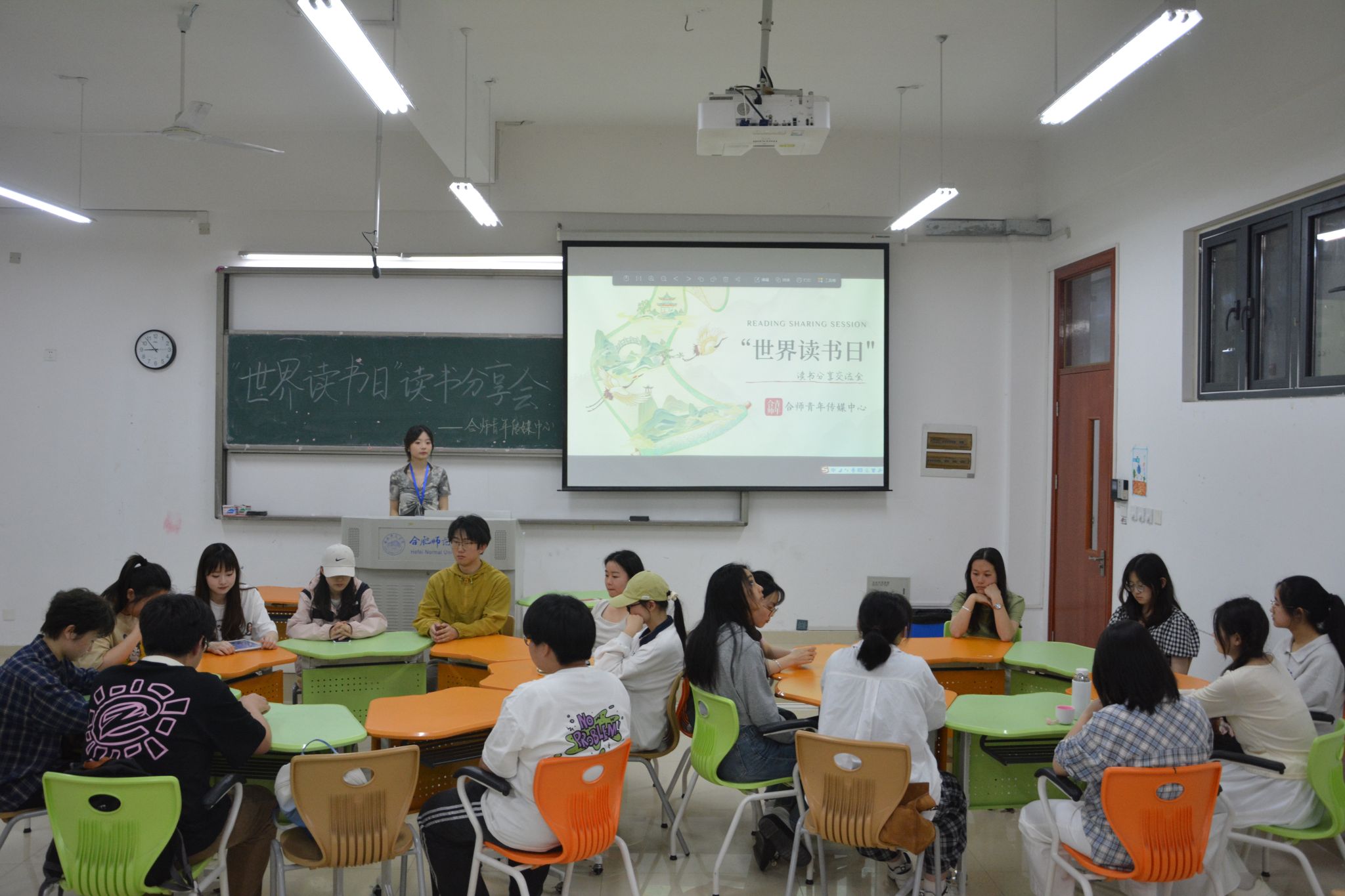 为迎接第29个世界读书日的到来,4月23日晚上,合师青年传媒中心(下称“传媒中心”)在滨湖校区博学楼,锦绣校区同学通过线上会议的形式参加了“世界读书日”读书分享交流会活动。传媒中心29名成员参加活动,活动由文学部负责人薛子怡主持。