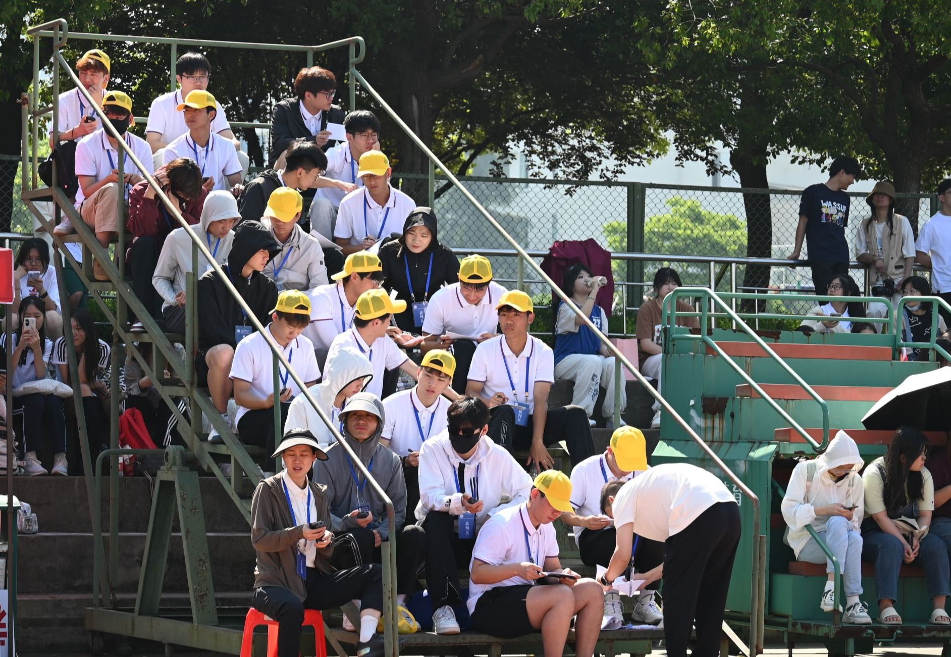 风吹日晒不畏辛苦;裁判员们以实事求是的工作态度,热情、饱满的工作精神,认真履行裁判员职责,秉公执裁,积极参与校运动会,以实际行动确保校运会的安全有序进行。感谢每一位裁判员志愿者的辛勤付出。(体育科学学院:钱昶臻 苏龙)