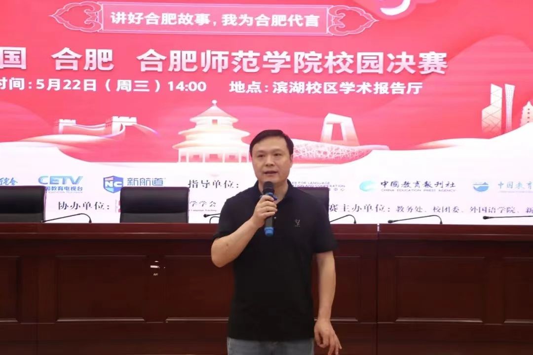 5月22日下午,第四届“用英语讲中国故事”beat365在线唯一官网校园决赛于滨湖校区学术报告厅举行。新航道公司“用英语讲中国故事”合肥组委会主任俞航、学生工作处处长、校团委书记刁文彬、外国语学院党委副书记杨娜、外国语学院副院长吴礼敬、滨湖校区综合管理办公室钟洁、教务处李舒与外国语学院2023级全体英语专业学生参加活动。