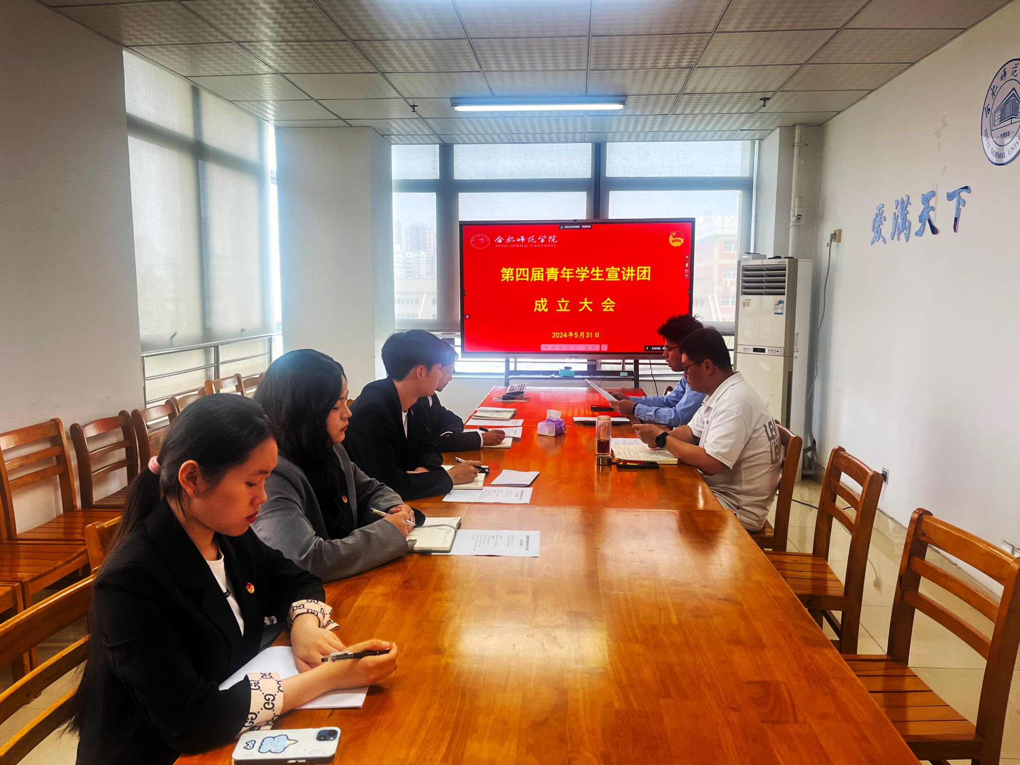 5月31日中午,学院第四届青年学生宣讲团成立大会在锦绣校区行知楼、腾讯会议举行。院团委书记、学生工作部部长刁文彬,院团委副书记何磊及14名青年学生宣讲员参加会议。