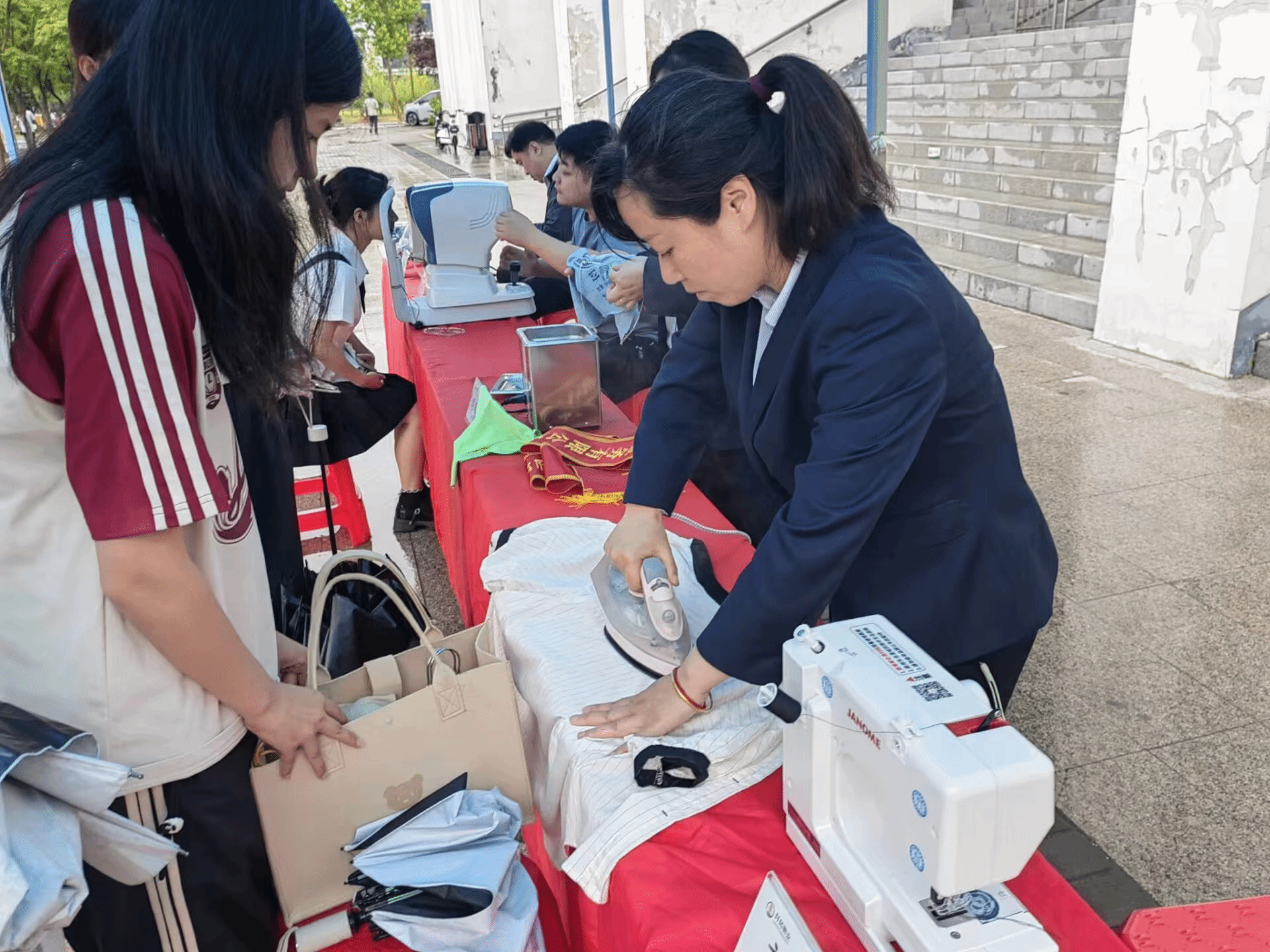 本次活动准备了保养清洗眼镜、配备钥匙、熨烫衣物、修理自行车等免费服务项目。活动现场,虽然下着毛毛细雨,也阻挡不了同学们的热情,享受到解决小问题的喜悦,大家脸上洋溢着高兴满意的笑容。
