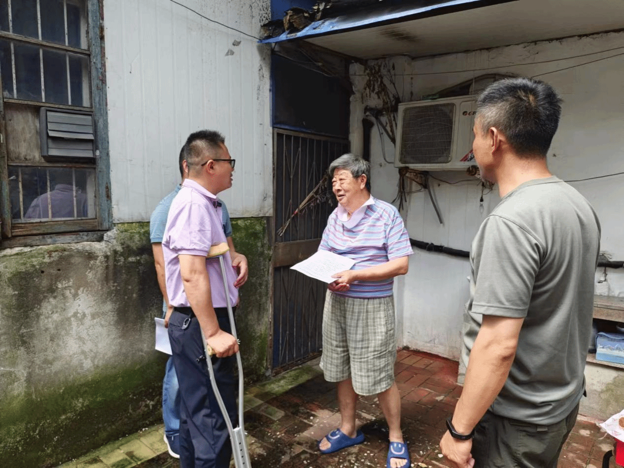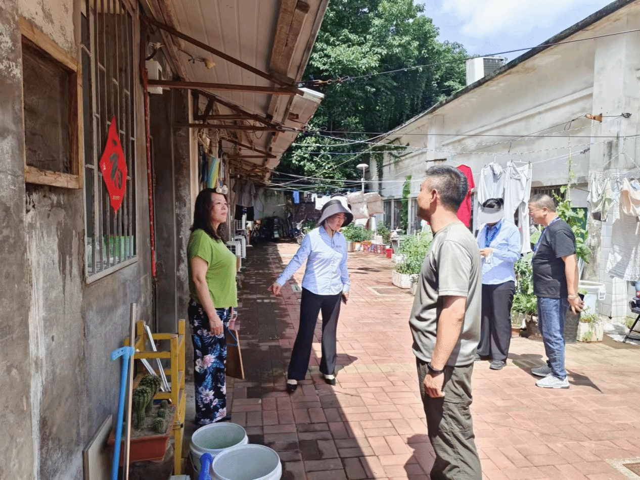 李叔,这段时间梅雨汛期,大雨下得厉害,我们来看看您。您家还好吧?房子有没有漏雨、裂缝情况啊,要是有,您可得及时跟我们或者街道社区上的同志们联系说”。7月3日上午,学院资产管理处(招标办)牵头联合三孝口街道龚湾社区、学院后勤处(基建办)和保卫处以及物业部门,来到三孝口校区自建房等区域住户家中,实地查看自建房等区域住户住房安全等情况,开展雨季极端天气安全风险排查应对提醒工作。