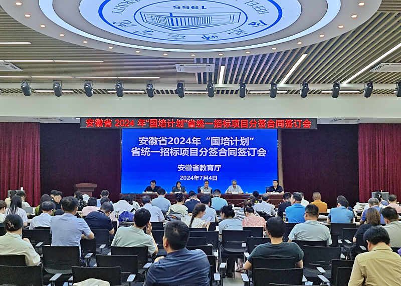 7月4日,安徽省2024年“国培计划”省统一招标项目合同签订会在锦绣校区大学生活动中心举办,安徽省教育厅教师发展中心主任朱曙培、继续教育学院院长吴文、省教育发展中心相关领导出席会议。20家中标单位代表和全省75个市、县(区)师训负责人参与了本次签订会。