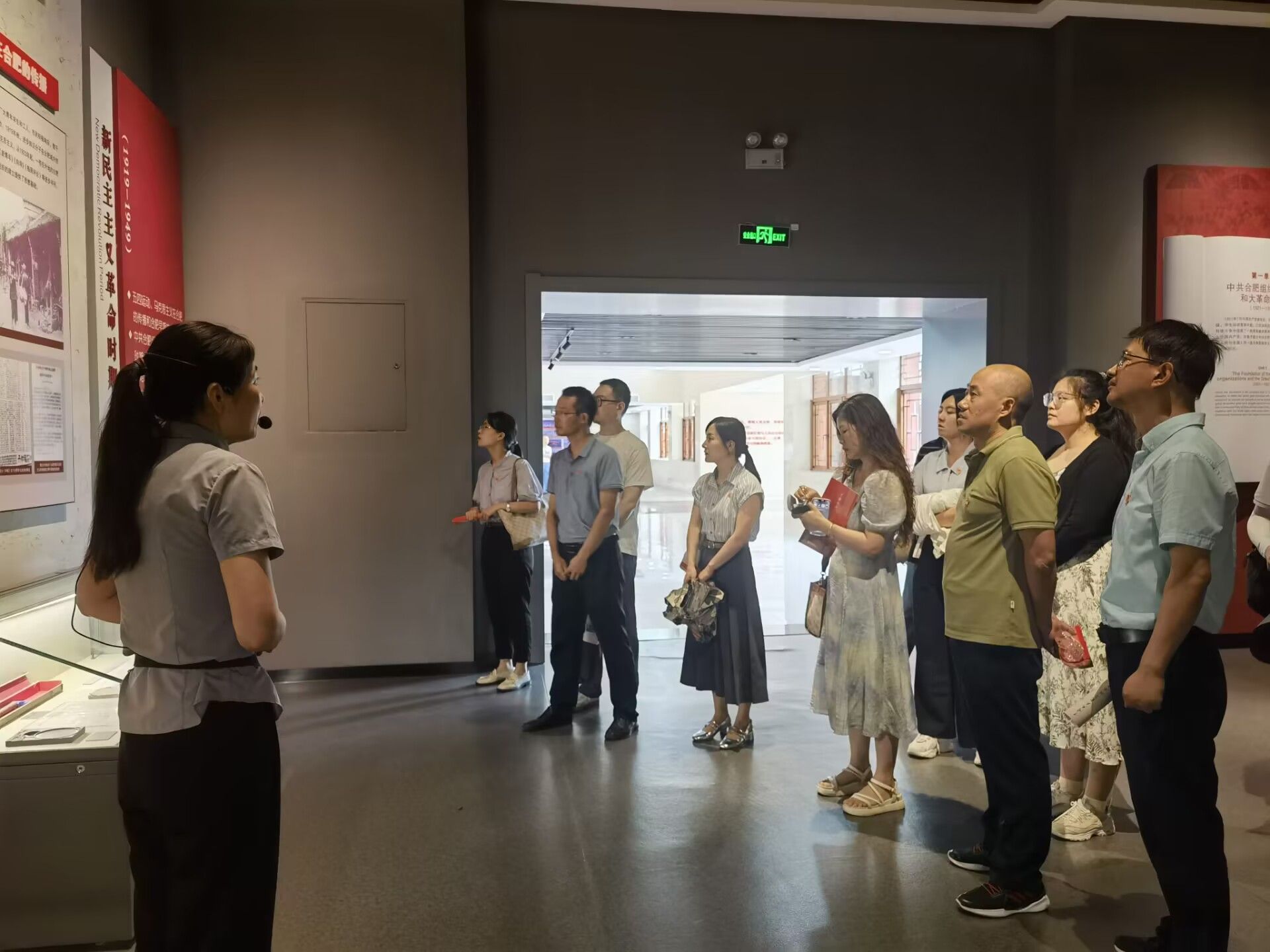 为庆祝中国共产党成立103周年,在广大党员中加强革命传统教育,弘扬民族精神,增进爱国情感,牢记党的宗旨、理想和信念,加强党性修养,丰富组织生活,7月4日上午,机关第二党委就业创业工作处与信息化管理处党支部、资产管理处党支部、发展规划处党支部联合开展主题党日实践活动。机关第二党委书记陶有浩和三个党支部书记带领三个支部全体党员一行前往中国共产党合肥历史馆,开展瞻仰缅怀革命先烈参观学习教育活动。