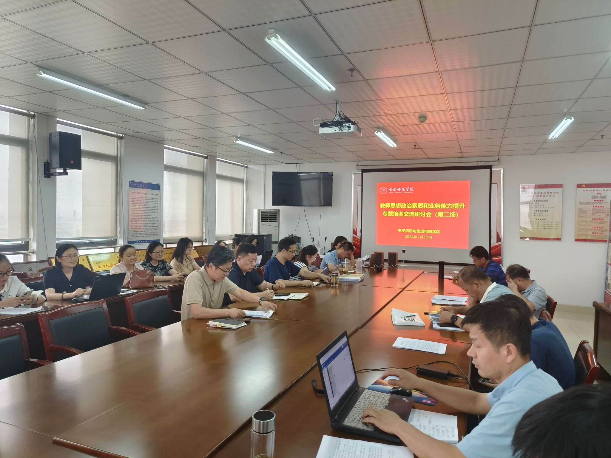 7月10日—11日,根据学校教师思想政治素质和业务能力提升专题培训工作安排,电子信息与集成电路学院积极组织全体围绕培训主题,开展了2场交流研讨活动,学院党政班子、全体教职工参会,会议由党委副书记、院长张忠祥主持。