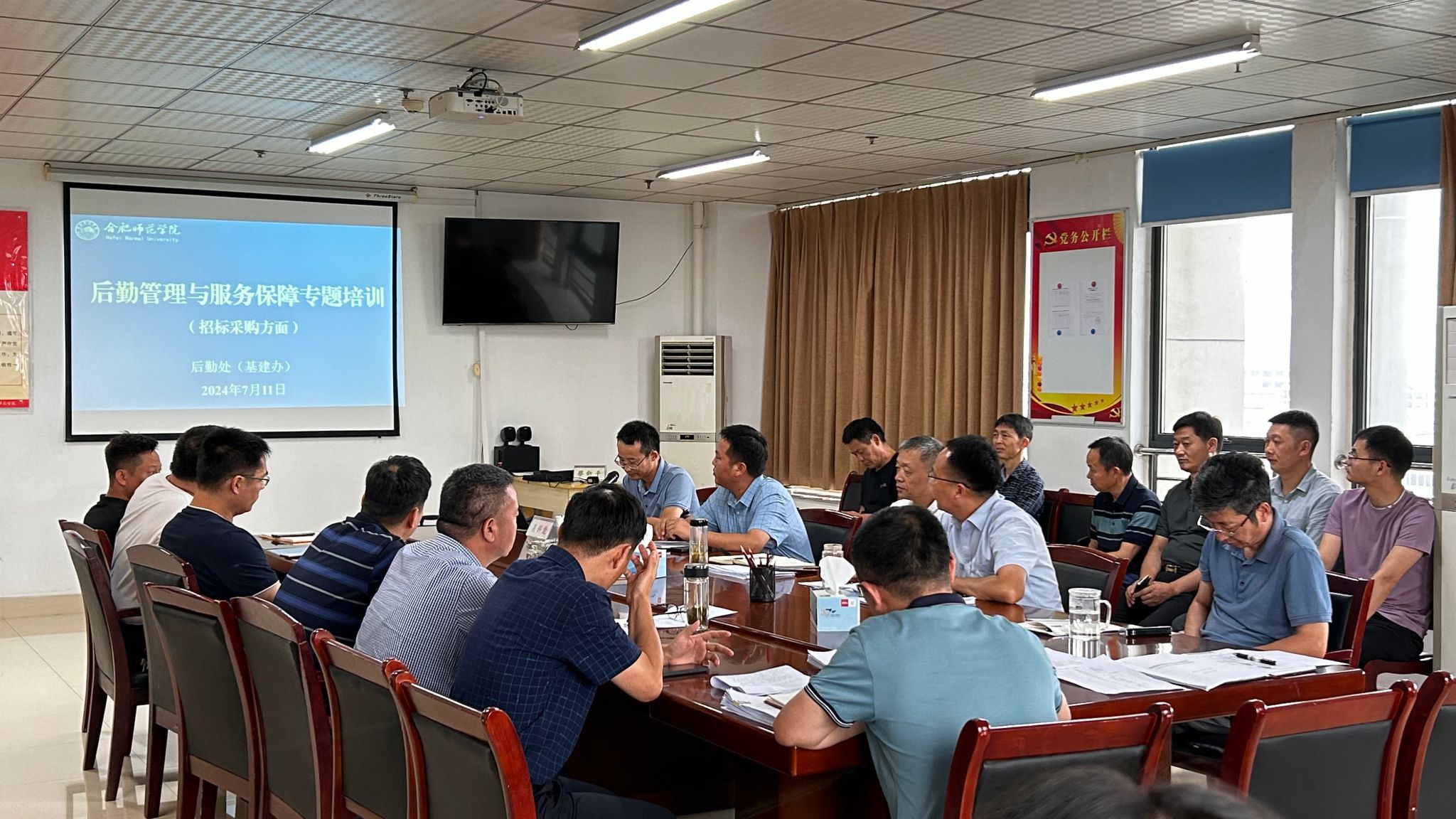 为进一步提升管理水平、高质量做好后勤保障工作,2024年7月11日下午,后勤处(基建办)组织开展工程审计和招标采购专题培训,分别邀请学院审计处处长蔡新平、资产管理处(招标办)副处长吴科能作专题报告,后勤处(基建办)全体工作人员参加培训学习。