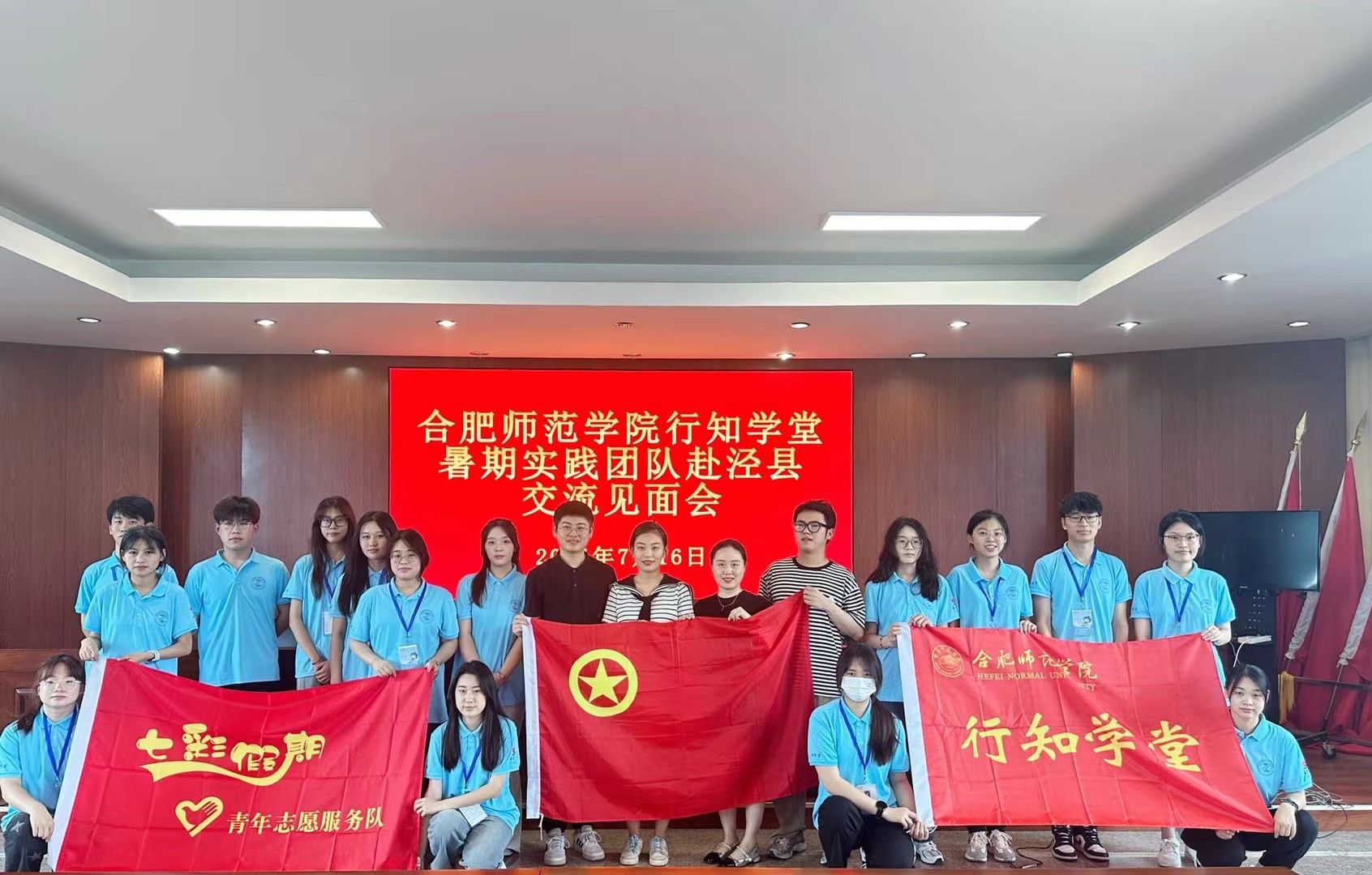 7月16日上午,院团委泾县行知学堂开班仪式在泾县泾川镇人民政府顺利举行。泾县泾川镇党群平台主任雷敏、泾川镇团委书记童颖、泾县行知学堂指导教师、院团委教师钟树旺及小先生代表参加开班仪式。会议由童颖主持。