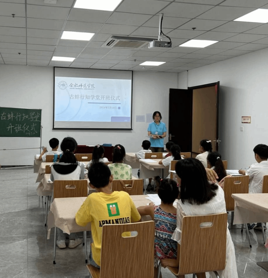 7月10日,生物与食品工程学院古蚌社区行知学堂正式开班。古蚌社区党委负责人张影、七位小先生以及19名小学员和学员家长参加了开班仪式。